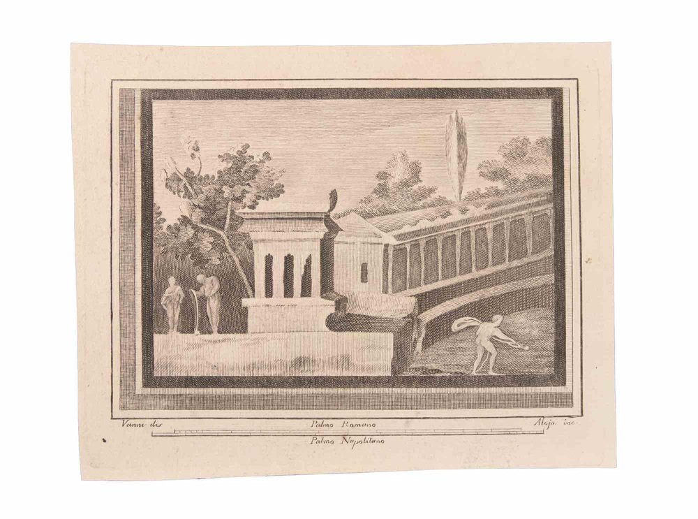 Luigi Aloja, Monument with Figure, Etching, 18th Century
