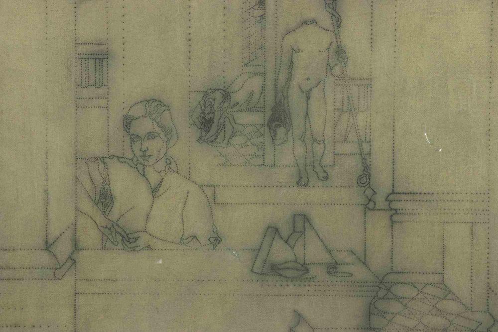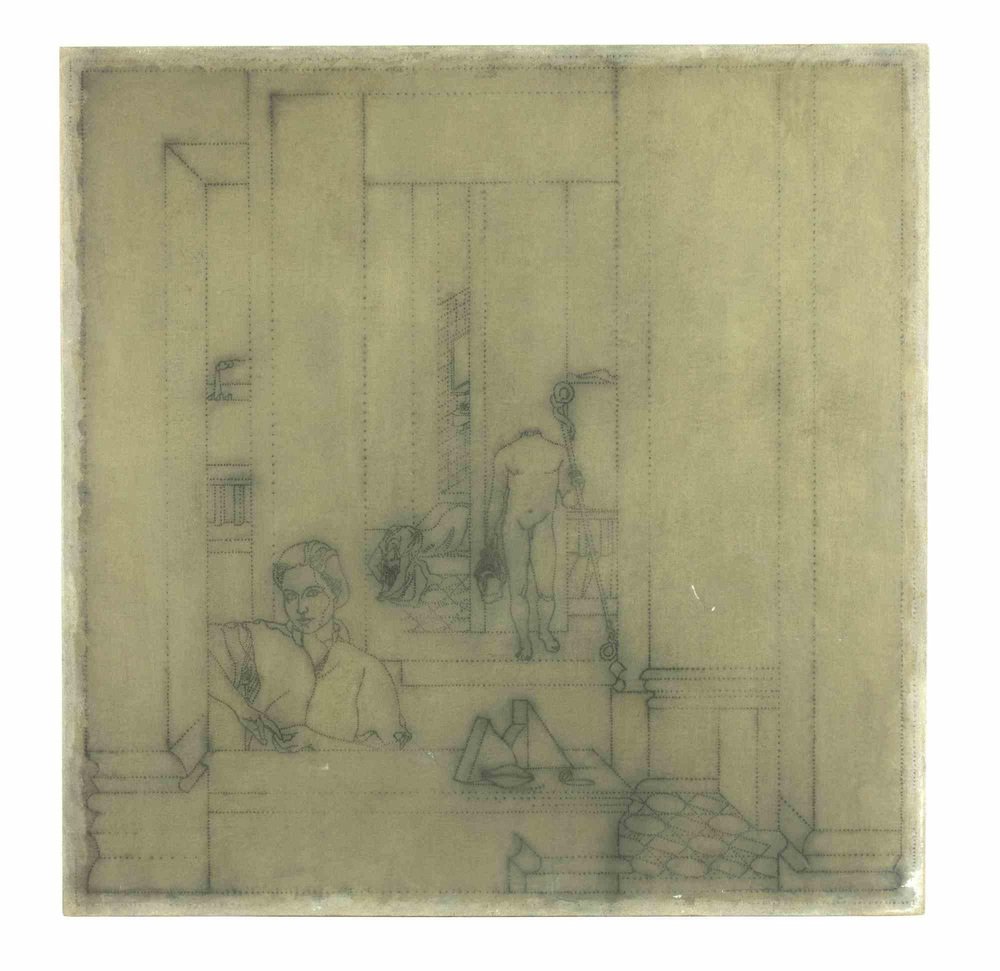 Luigi Campanelli, Geometric Composition of Man, Original Mixed Media on Canvas, 1980s