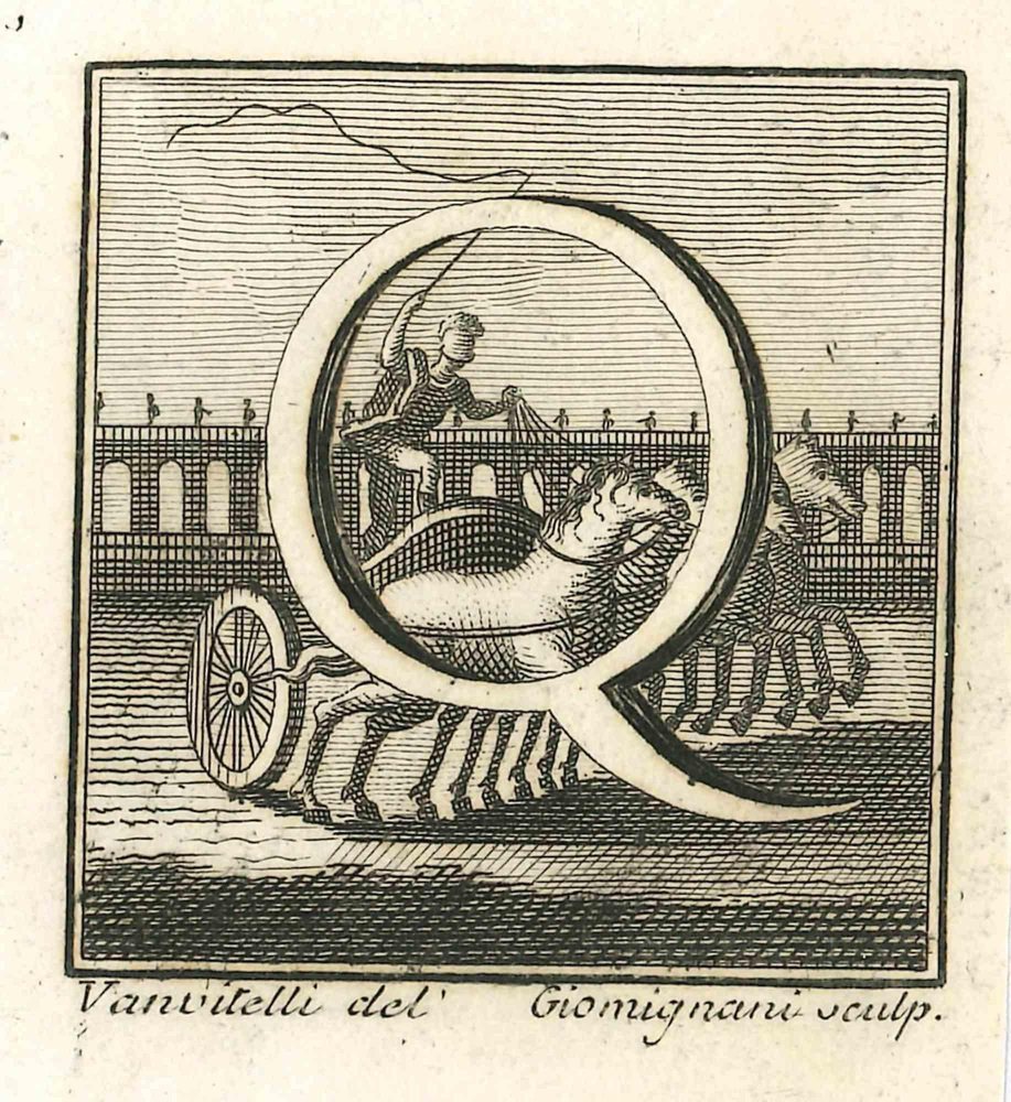 Luigi Vanvitelli, Letter of the Alphabet Q, Etching, 18th Century