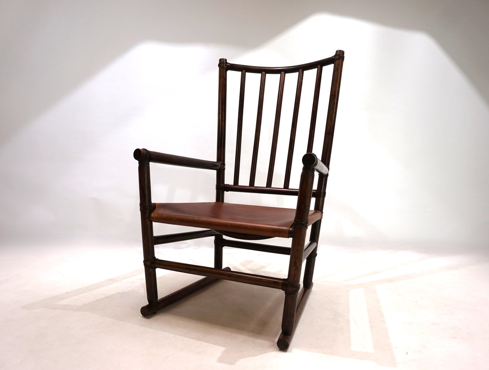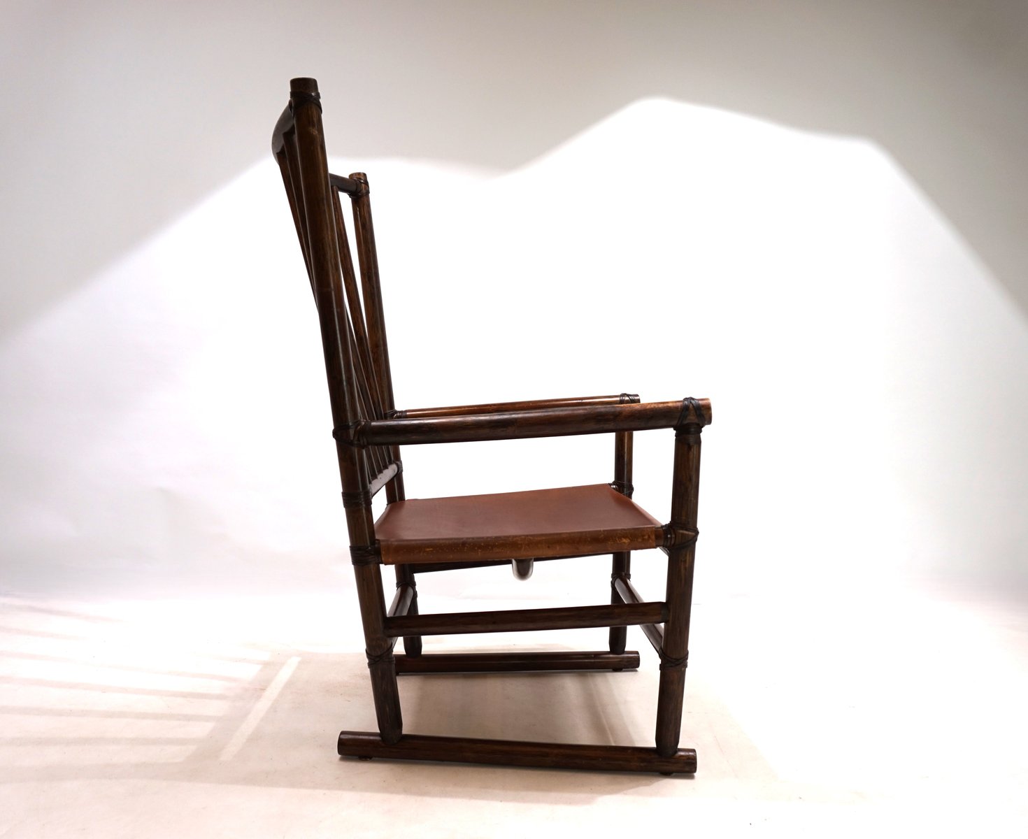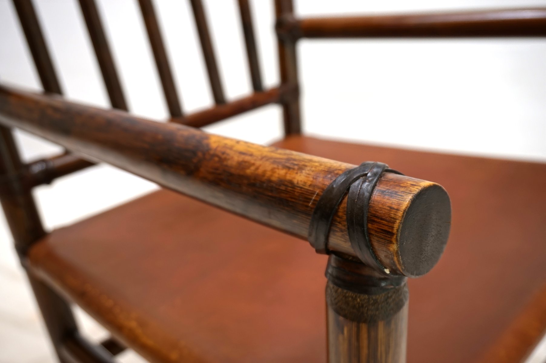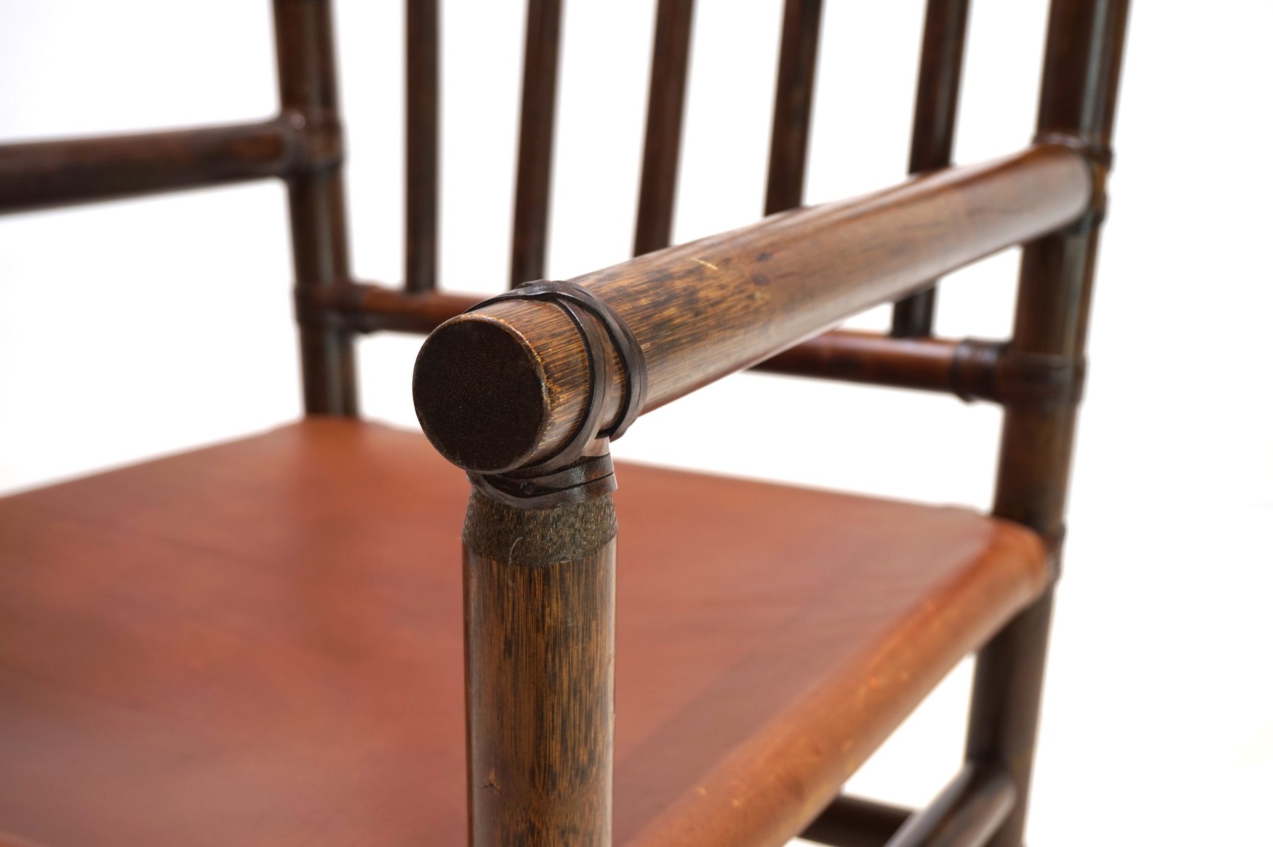 Manou Rattan Armchair with Leather Seat, 1960s