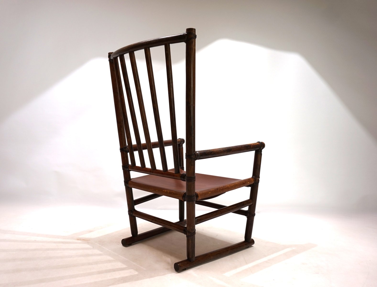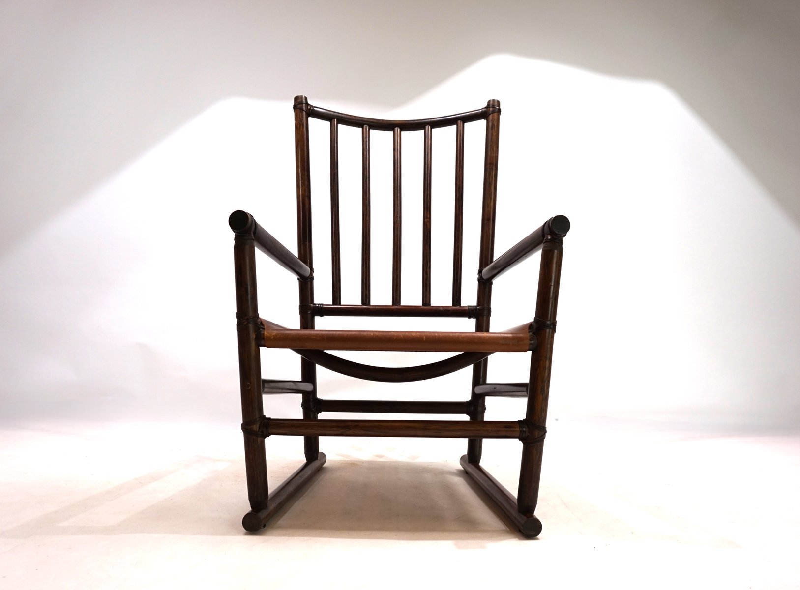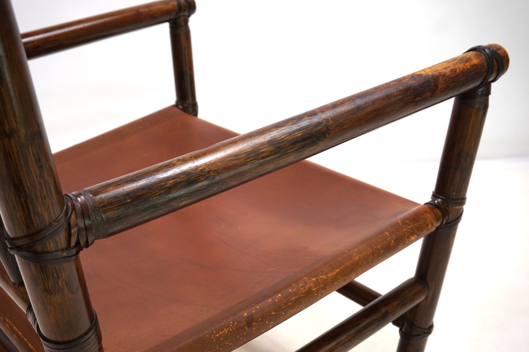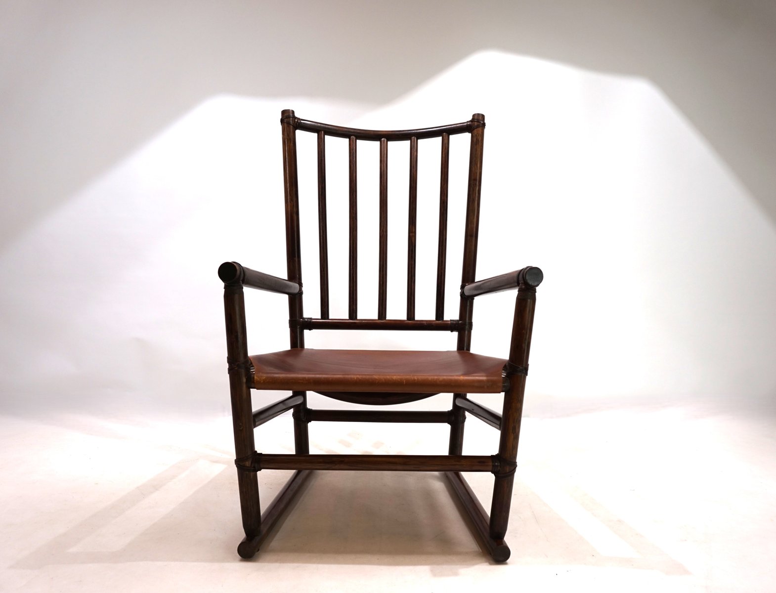 Manou Rattan Armchair with Leather Seat, 1960s