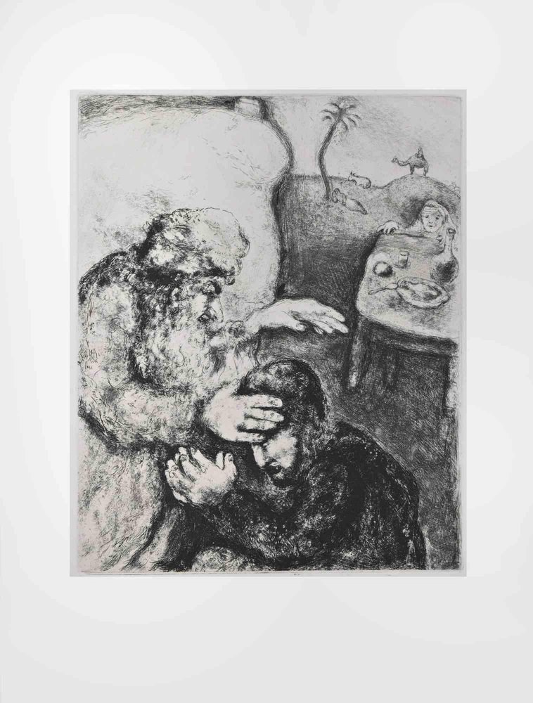 Marc Chagall, Isaac Blessing Jacob, Etching, 1956