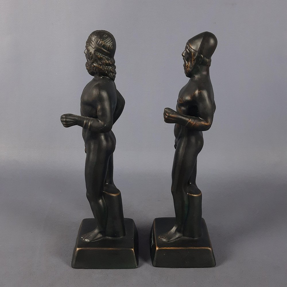 Matte Black Ceramic Riace Statues, 20th Century, Set of 2