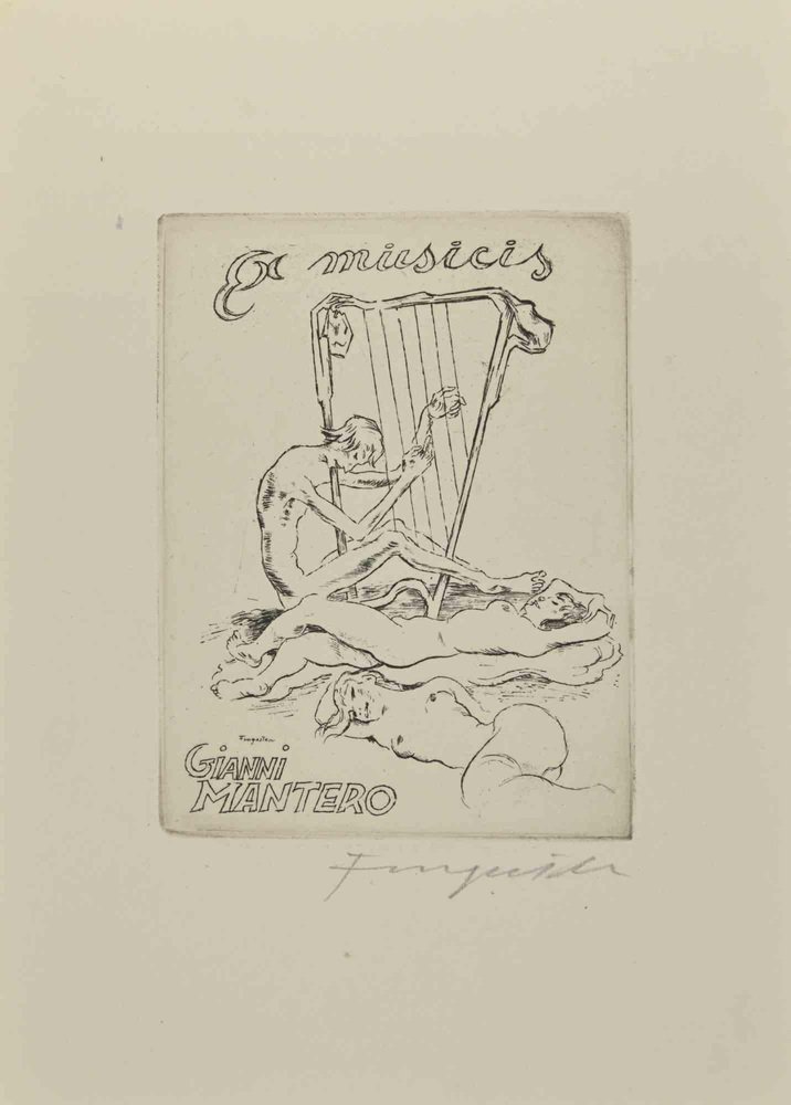 Michel Fingesten, Ex Libris Gianni Mantero, Ex Musicis, Etching, 1930s