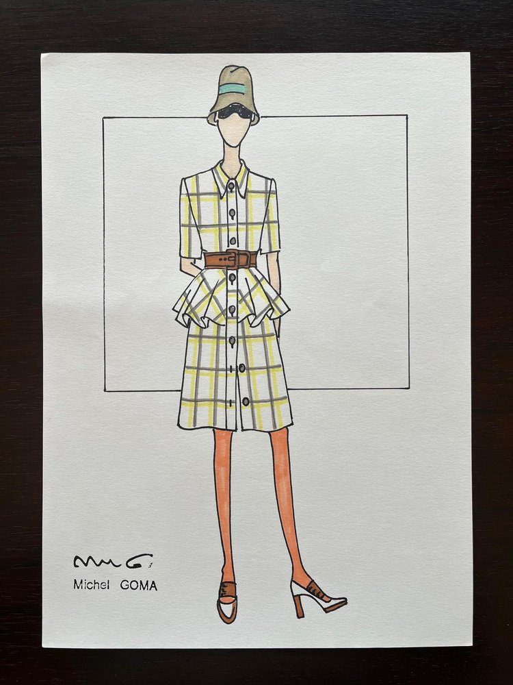 Michel Goma, Fashion Drawing, 1980s, Felt-Tipped Pen