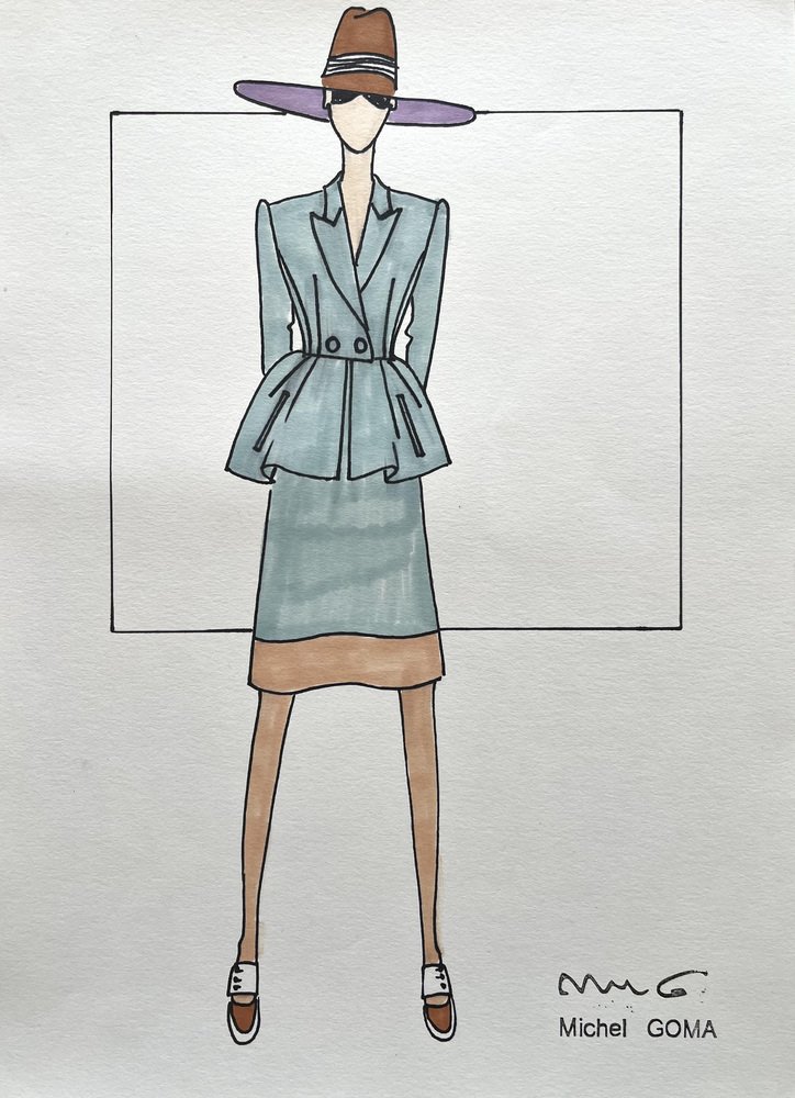 Michel Goma, Fashion Drawing, 1980s, Felt-Tipped Pen