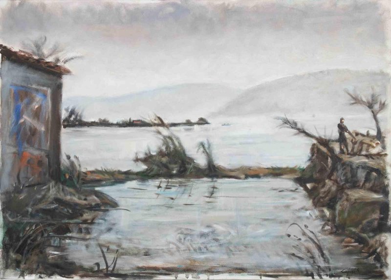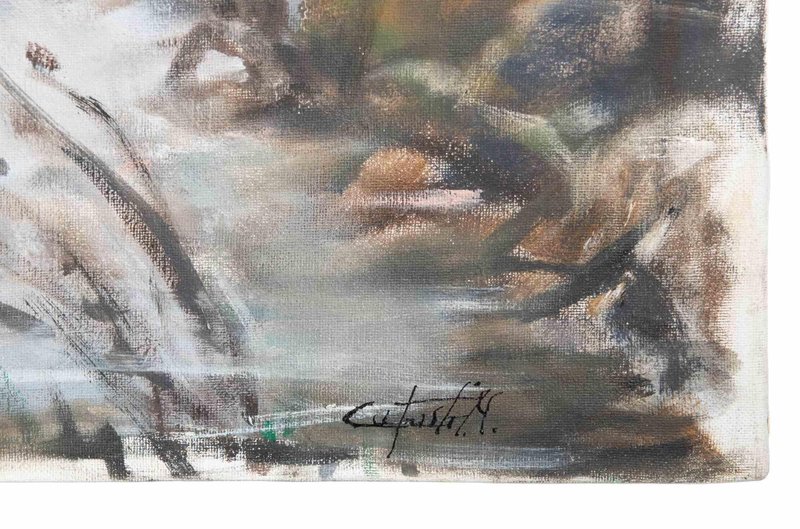 Michelangelo Cupisti, The Lake in Winter, Oil Painting, 1990s, Framed