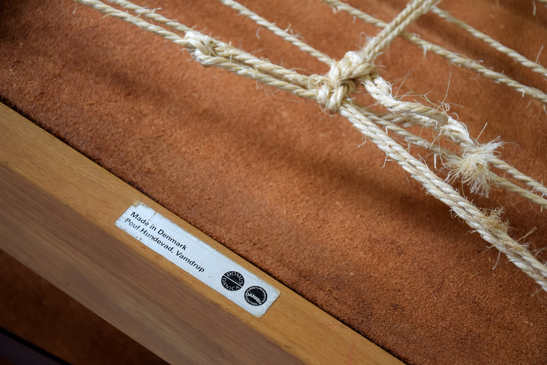In 1960, Hundevad began production of the Guldhøj Chair (1950s), a reinterpretation of an ancient Nordic folding chair of the same name. The original version was first excavated in 1891 from a burial mound in Vamdrup and is the oldest preserved piece of furniture in Scandinavia, dating back to the Scandinavian Bronze Age, around the second half of the 1400s BC. Working with the National Museum of Denmark where the relic is housed, Hundevad took precise measurements and calculated ways to streamline the design for production. Using four types of wood—oak, teak, wenge, and rosewood—along with leather for the seat, Hundevad’s reproduction was an instant success, producing more than 15,000 copies, which were sold worldwide. The chair is still in production and can be purchased at the National Museum of Denmark’s gift shop.