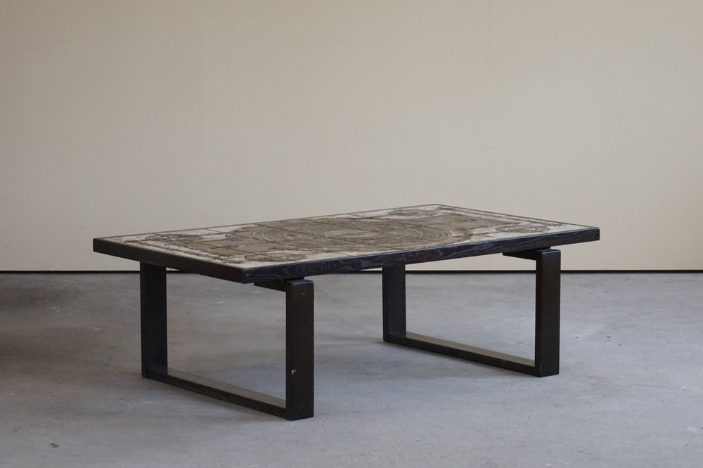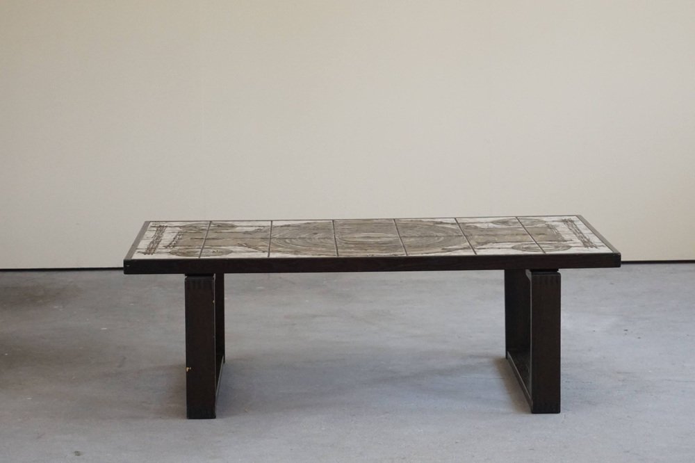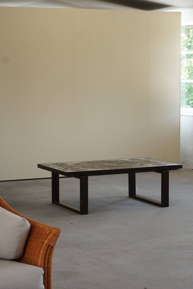 Mid-Century Danish Rectangular Coffee Table in Oak and Stoneware by Ox Art for Trioh, 1970