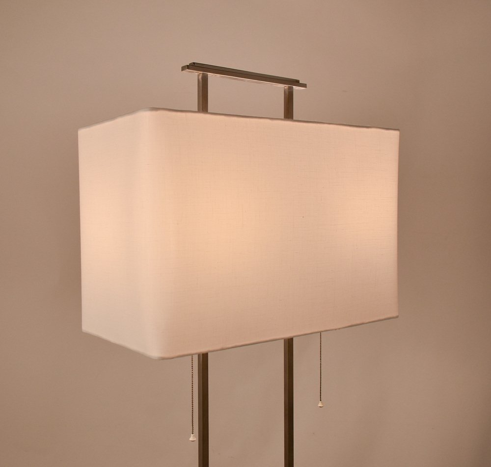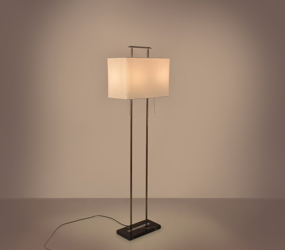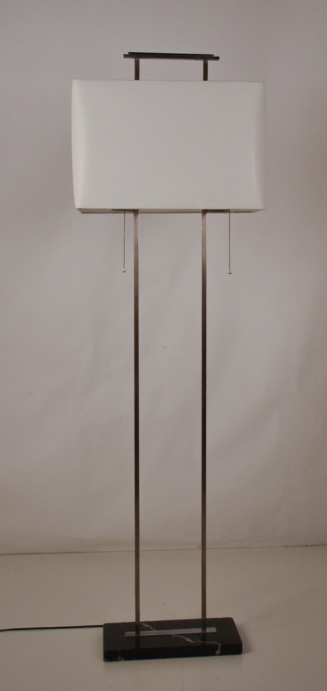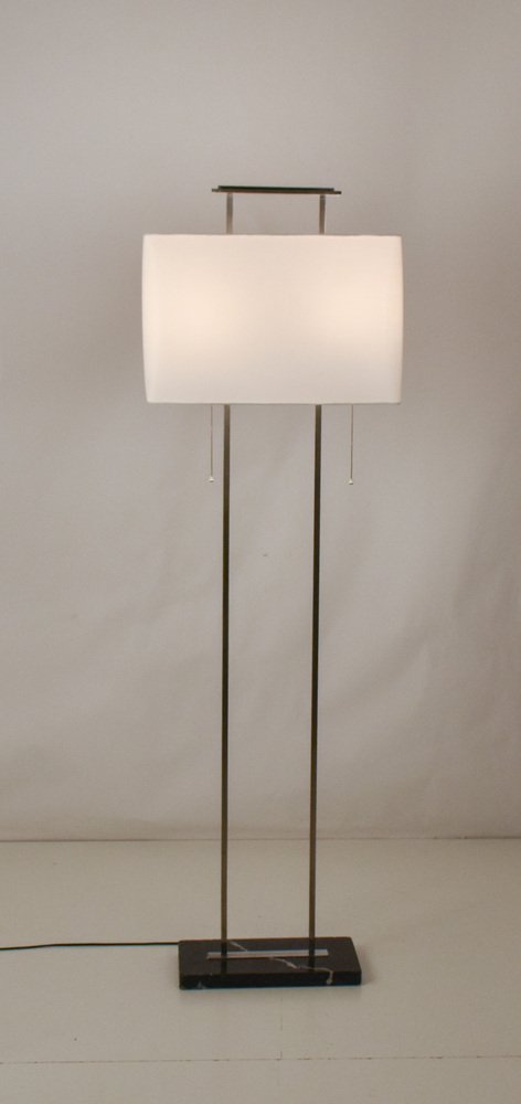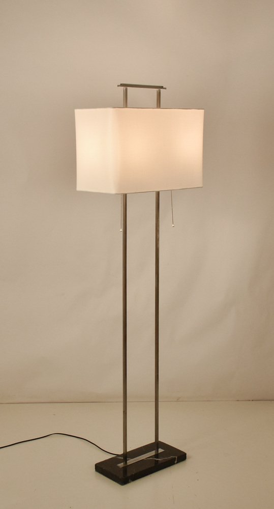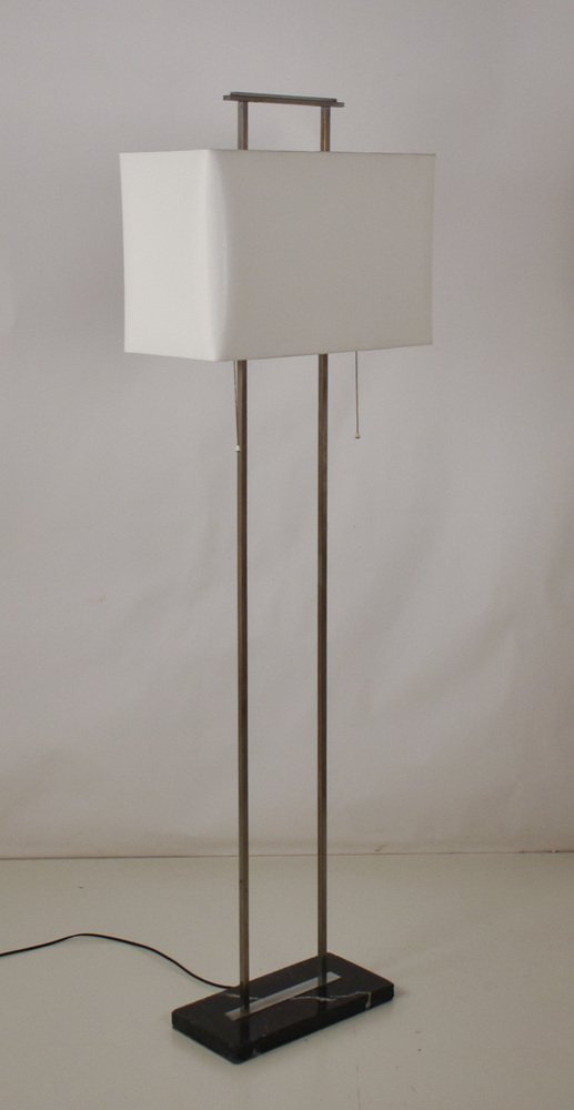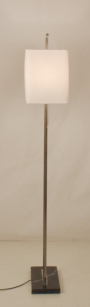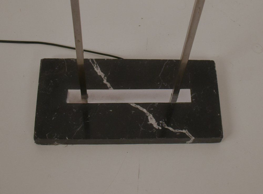 Mid-Century Floor Lamp with Base in Black Marble and Chromed Metal Structure