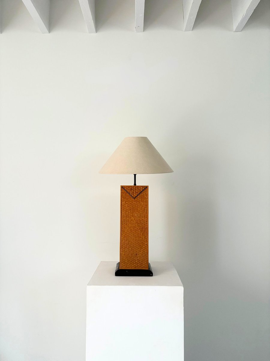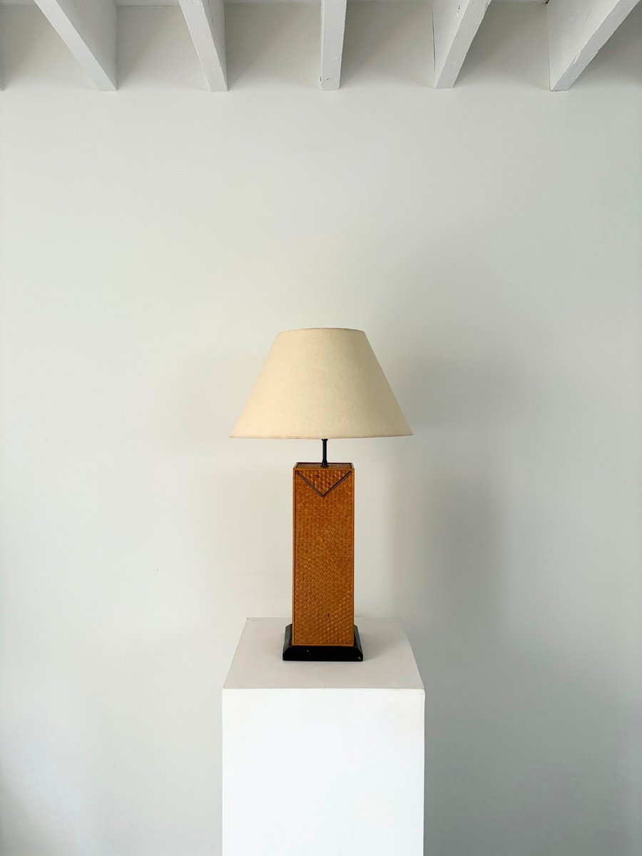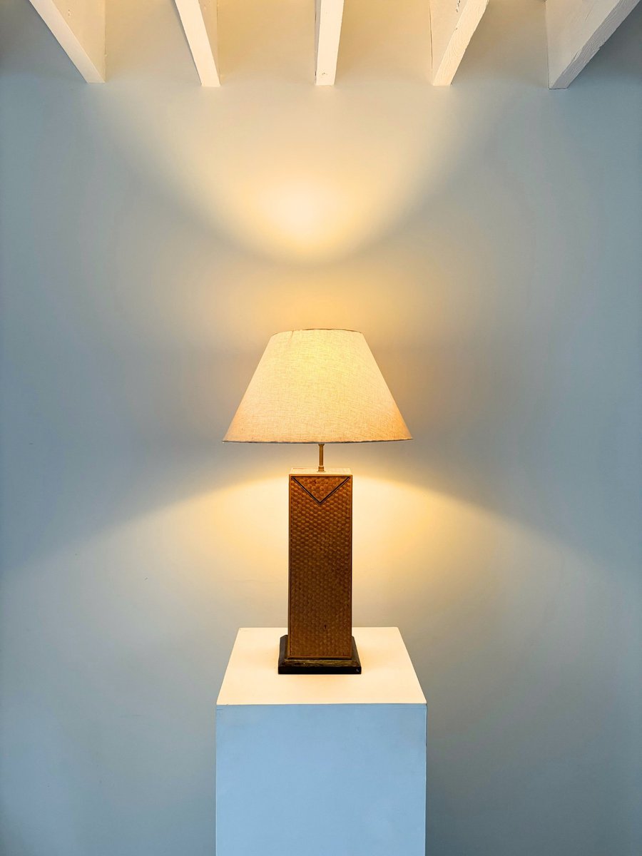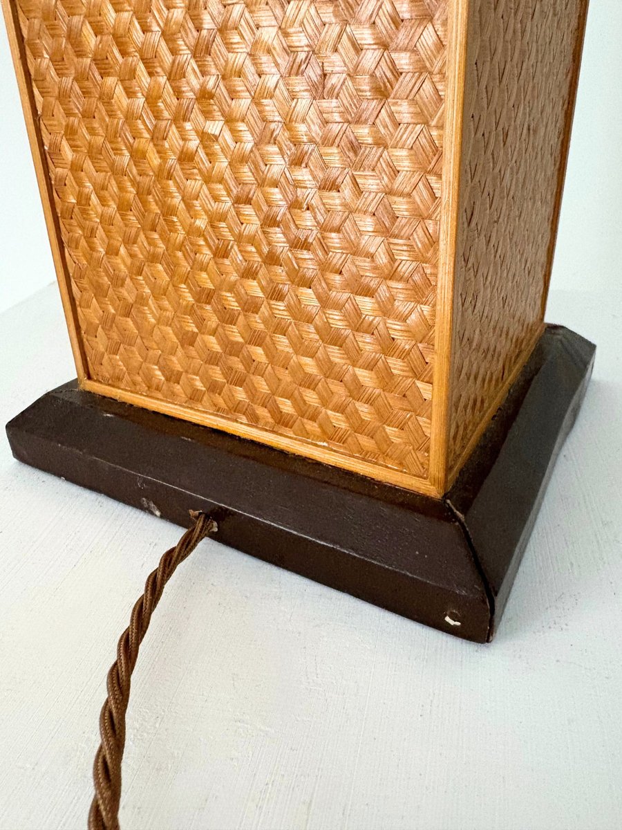 Mid-Century Geometric Rattan Lamp, Italy, 1950s