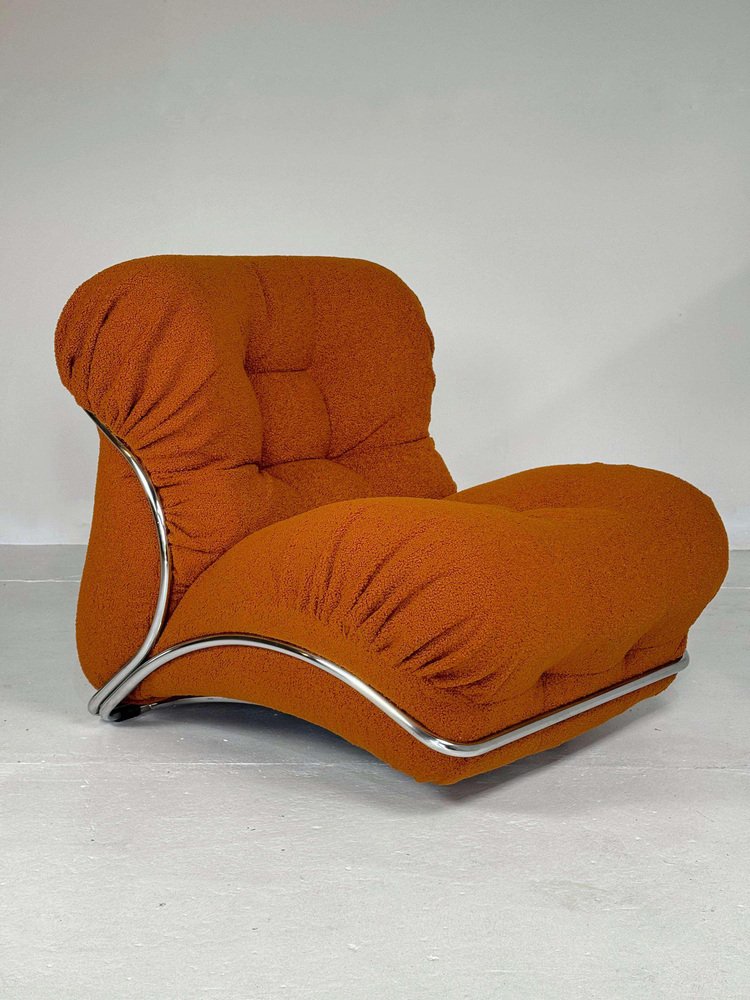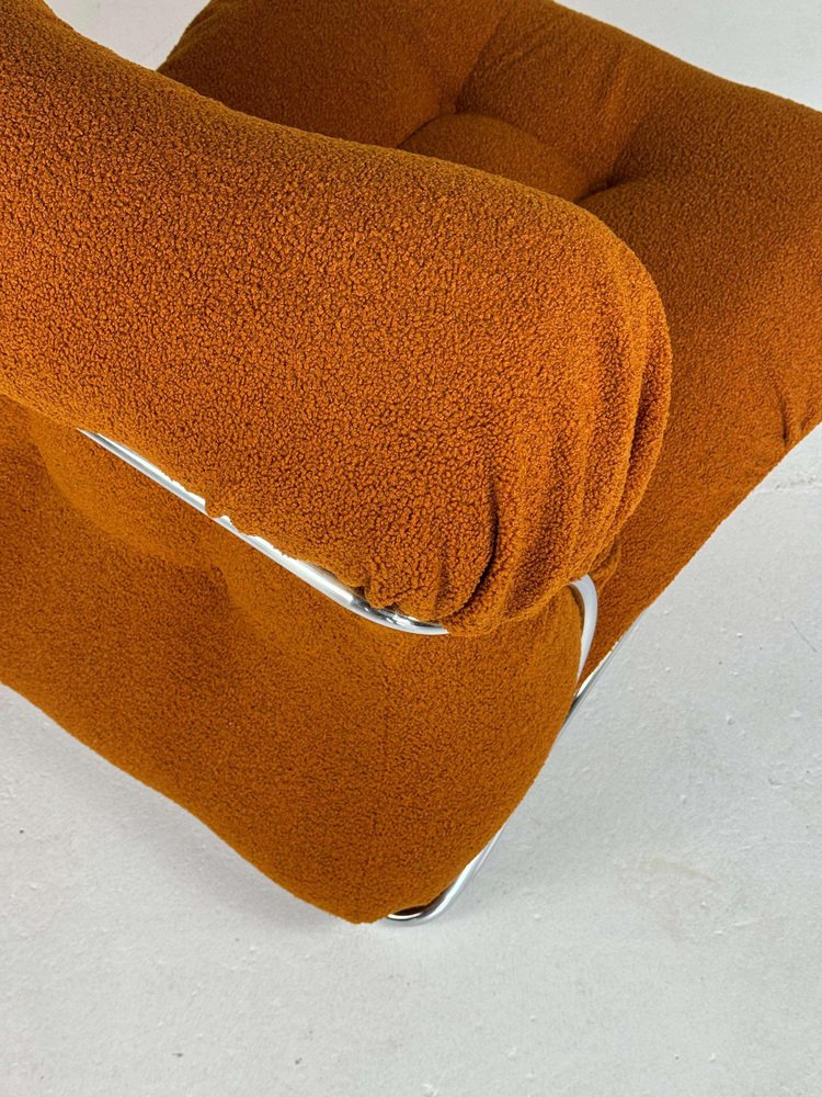 Mid-Century Italian Corolla Lounge Chair by I.P.E in Bouclé