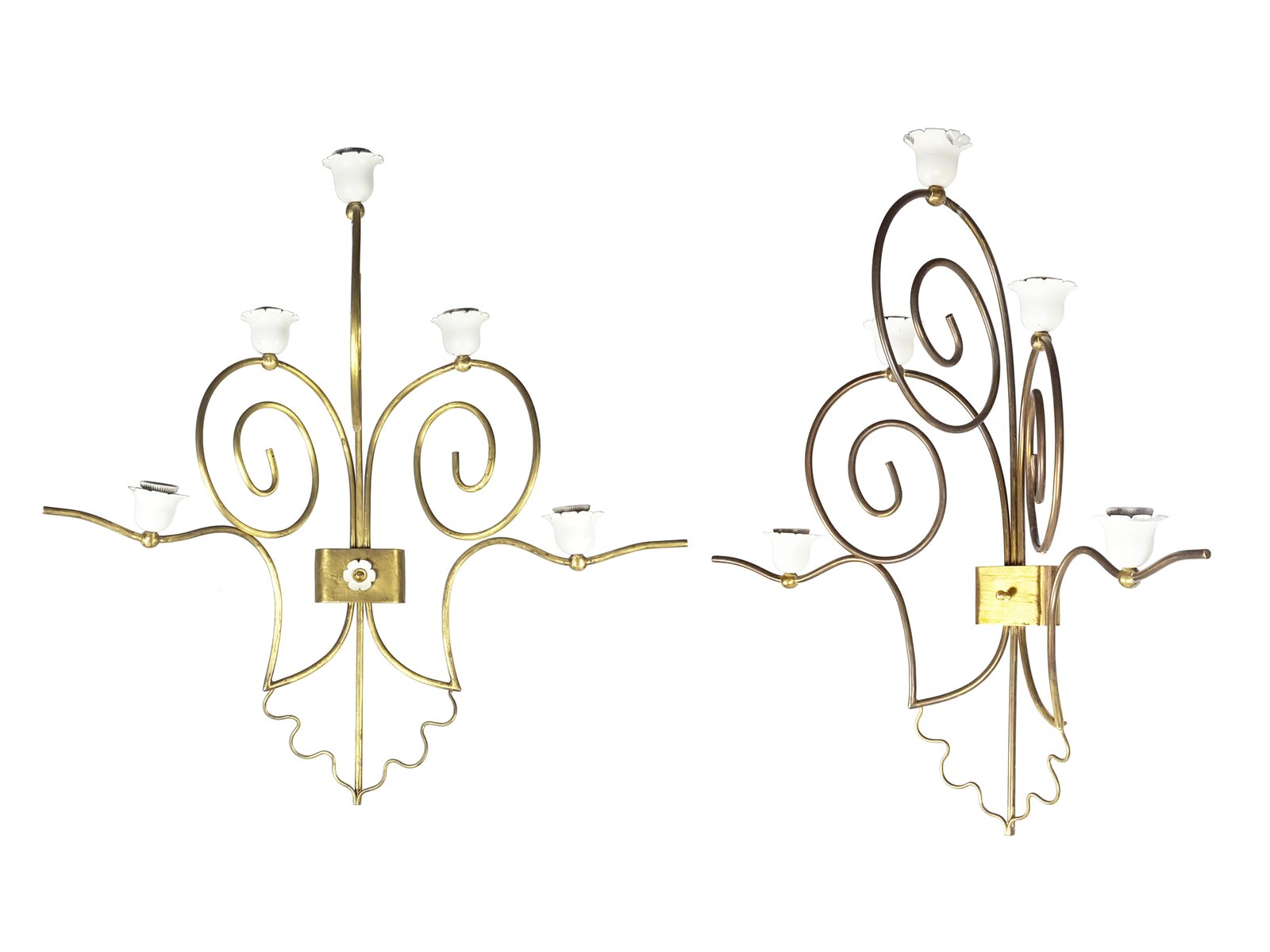 Mid-Century Italian Sconces in White Metal and Brass, Set of 2
