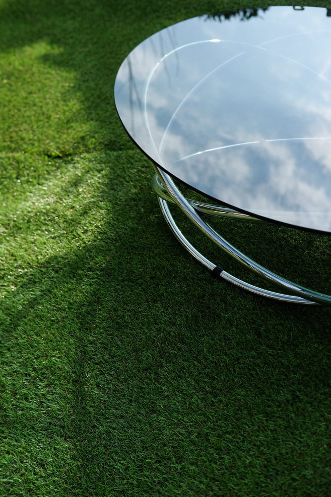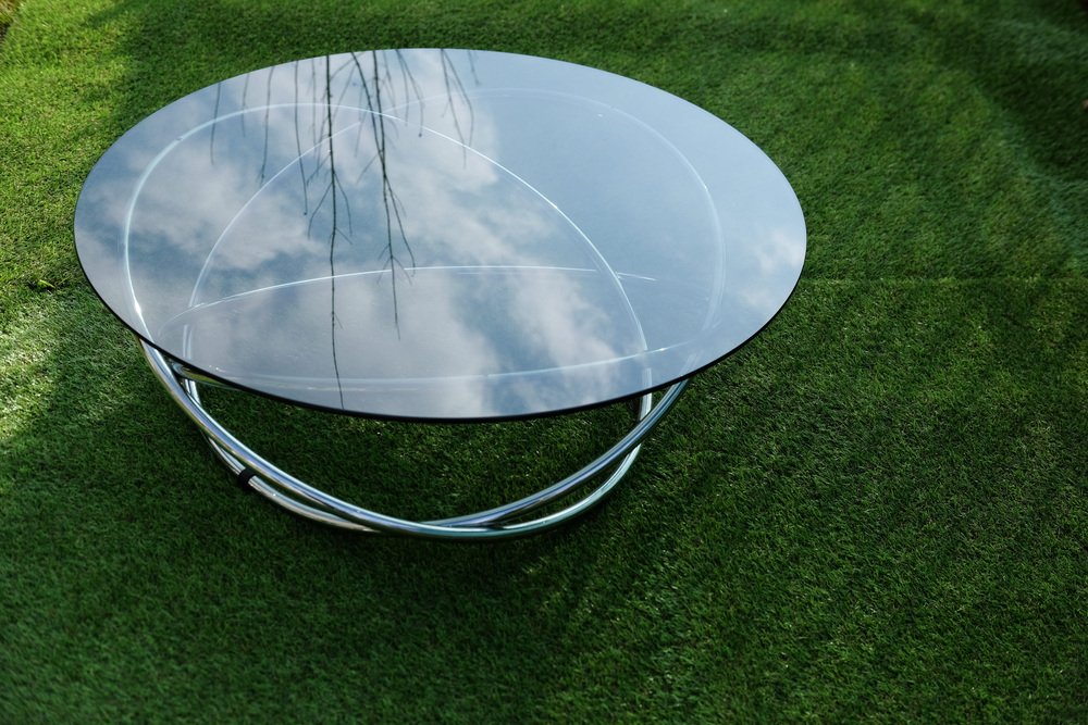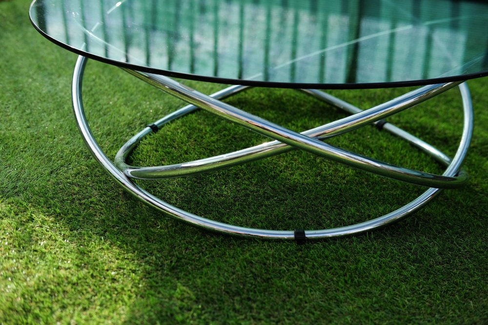 Mid-Century Minimal Swirl Living Room Table in Glass and Chromed Steel from Miniforms, Italy, 1970s