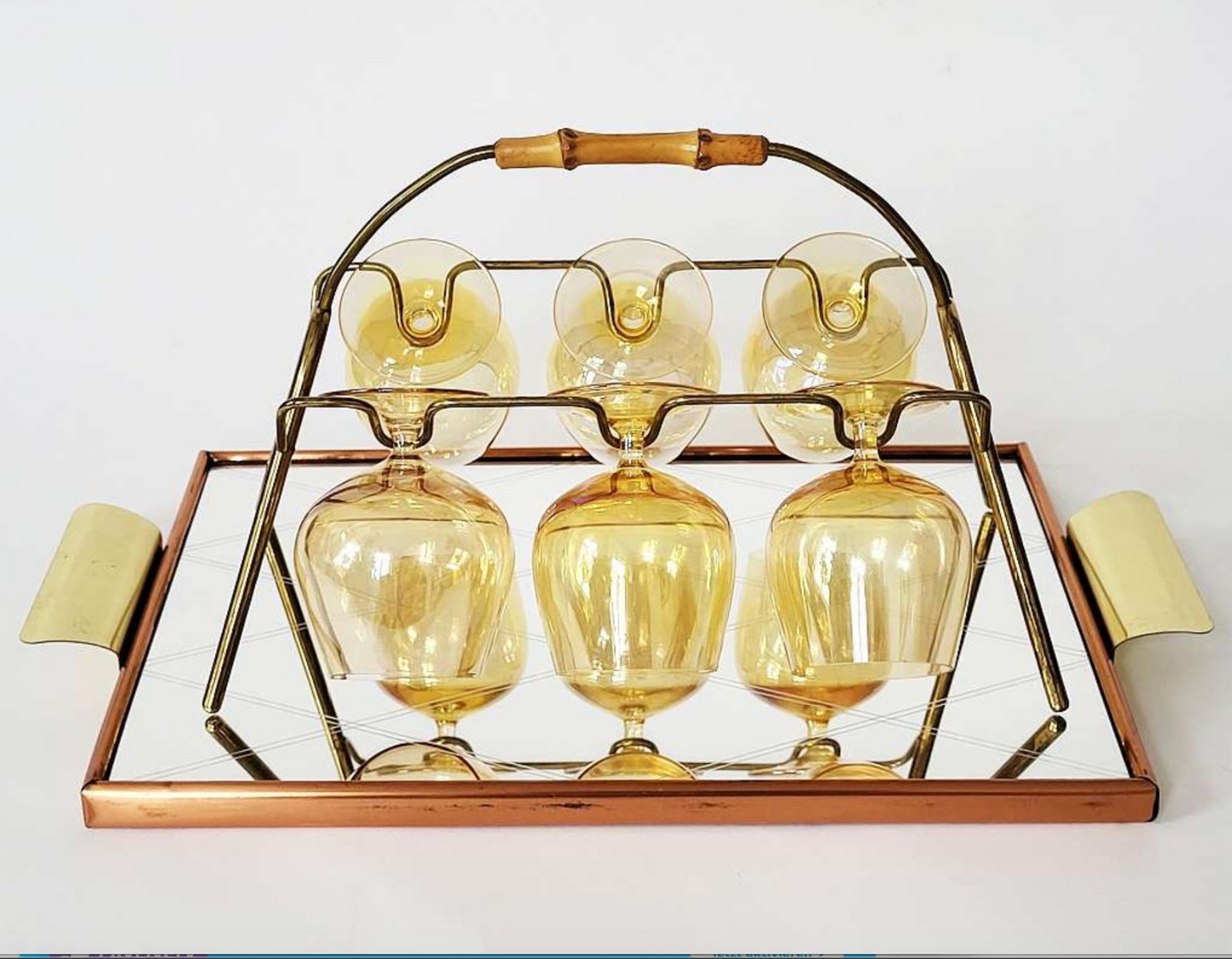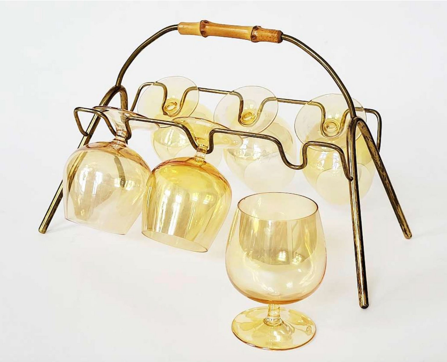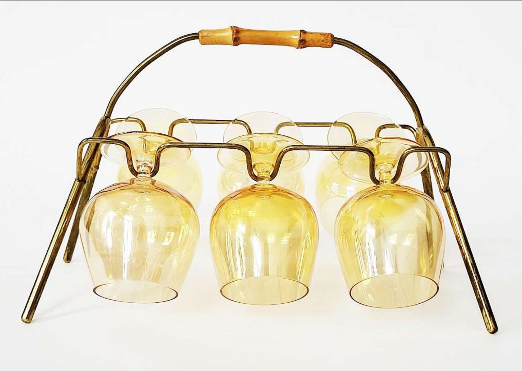 Mid-Century Modern Bamboo and Brass Cognac Glass Rack, 1950s
