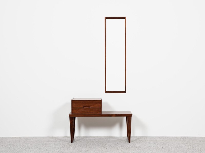 Mid-Century Modern Danish Mirror with Bench and Container in Rosewood by Aksel Kjersgaard 1960s, Set of 3