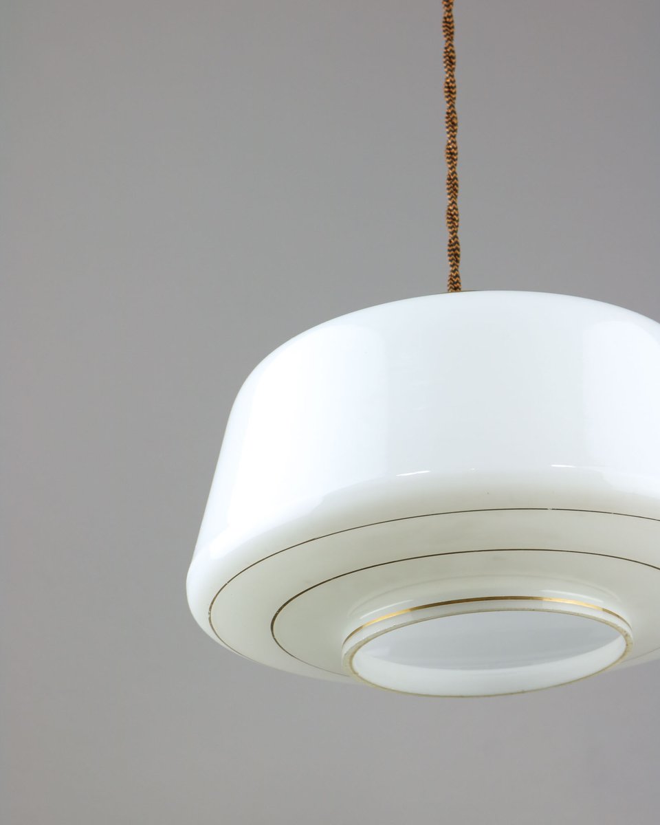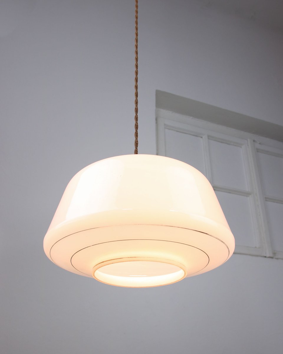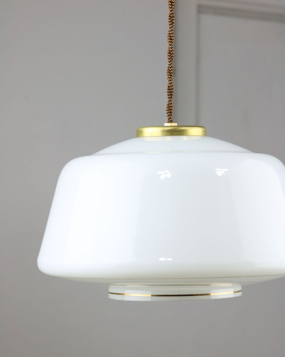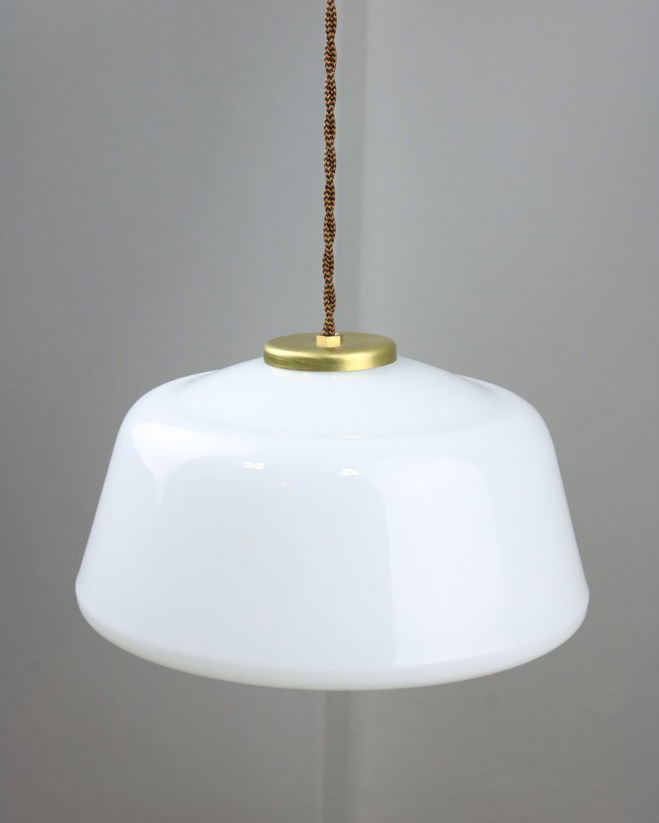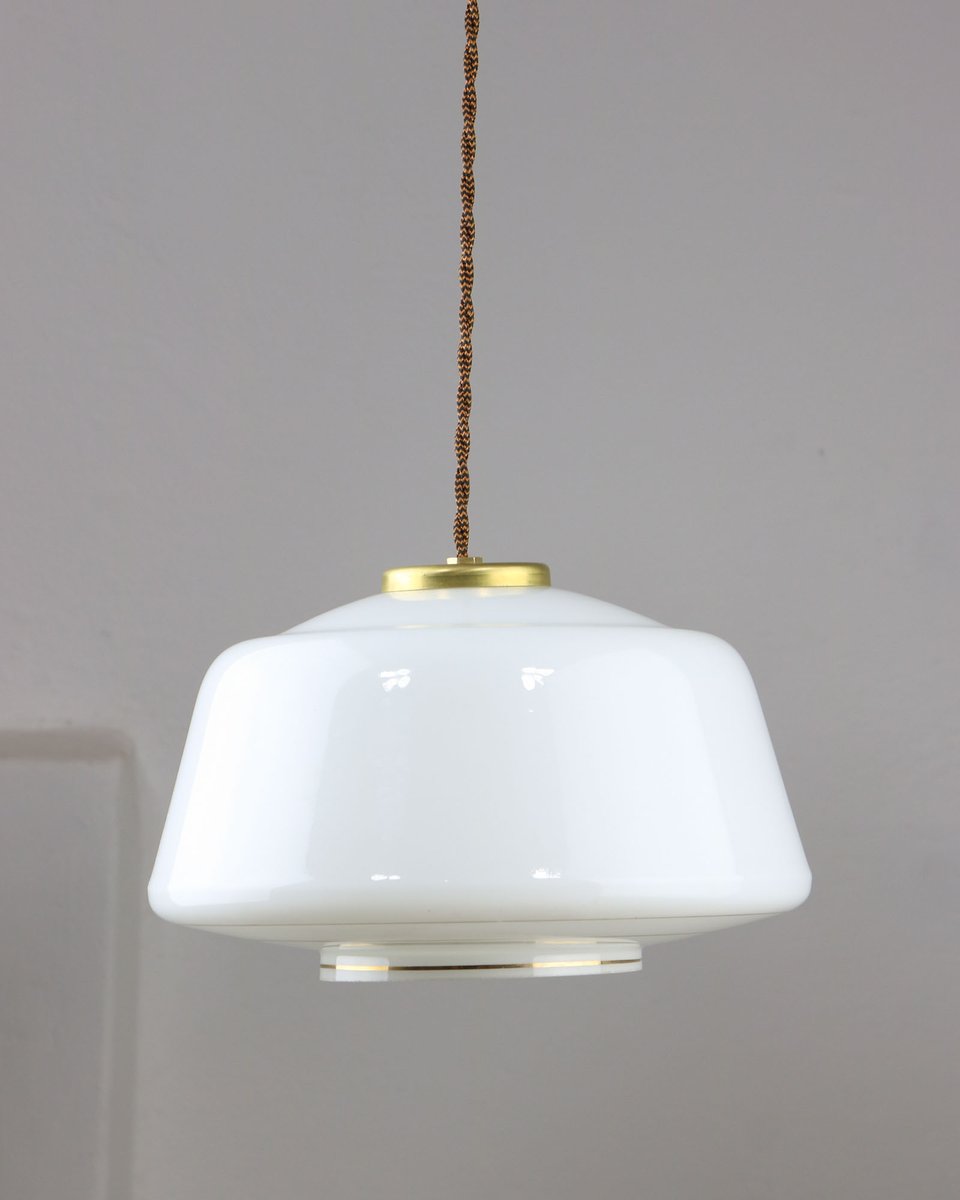 Mid-Century Modern Italian Brass and Opaline Glass Pendant Lamp
