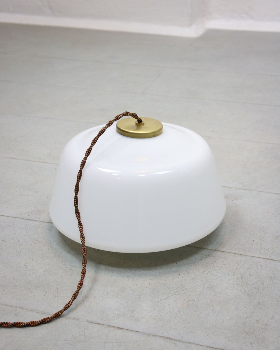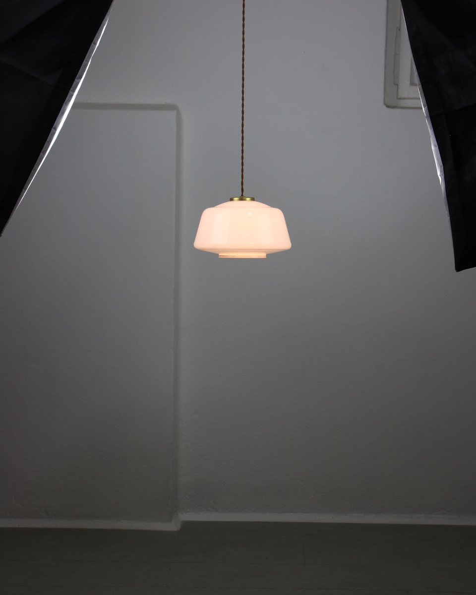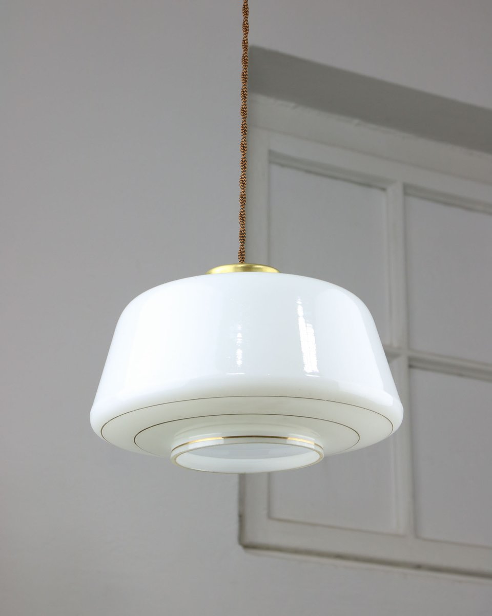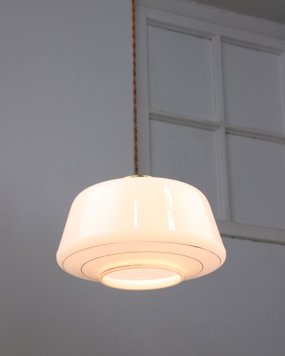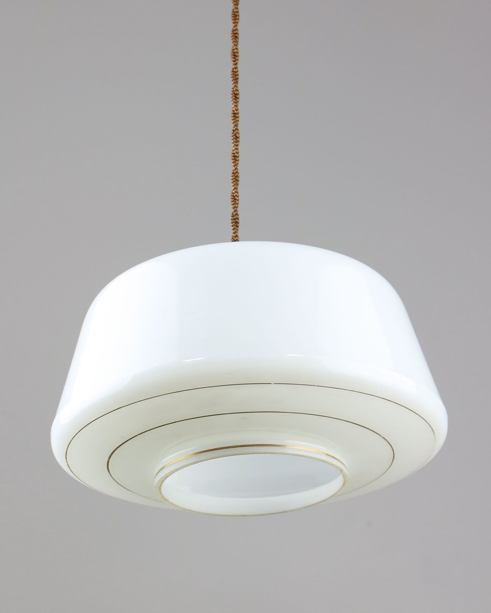 Mid-Century Modern Italian Brass and Opaline Glass Pendant Lamp