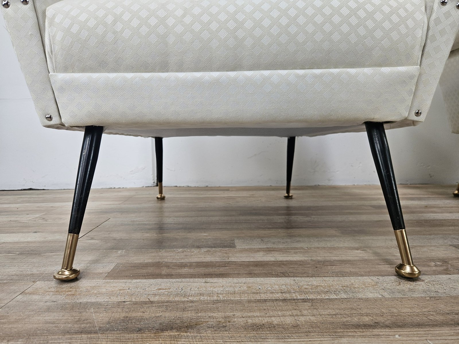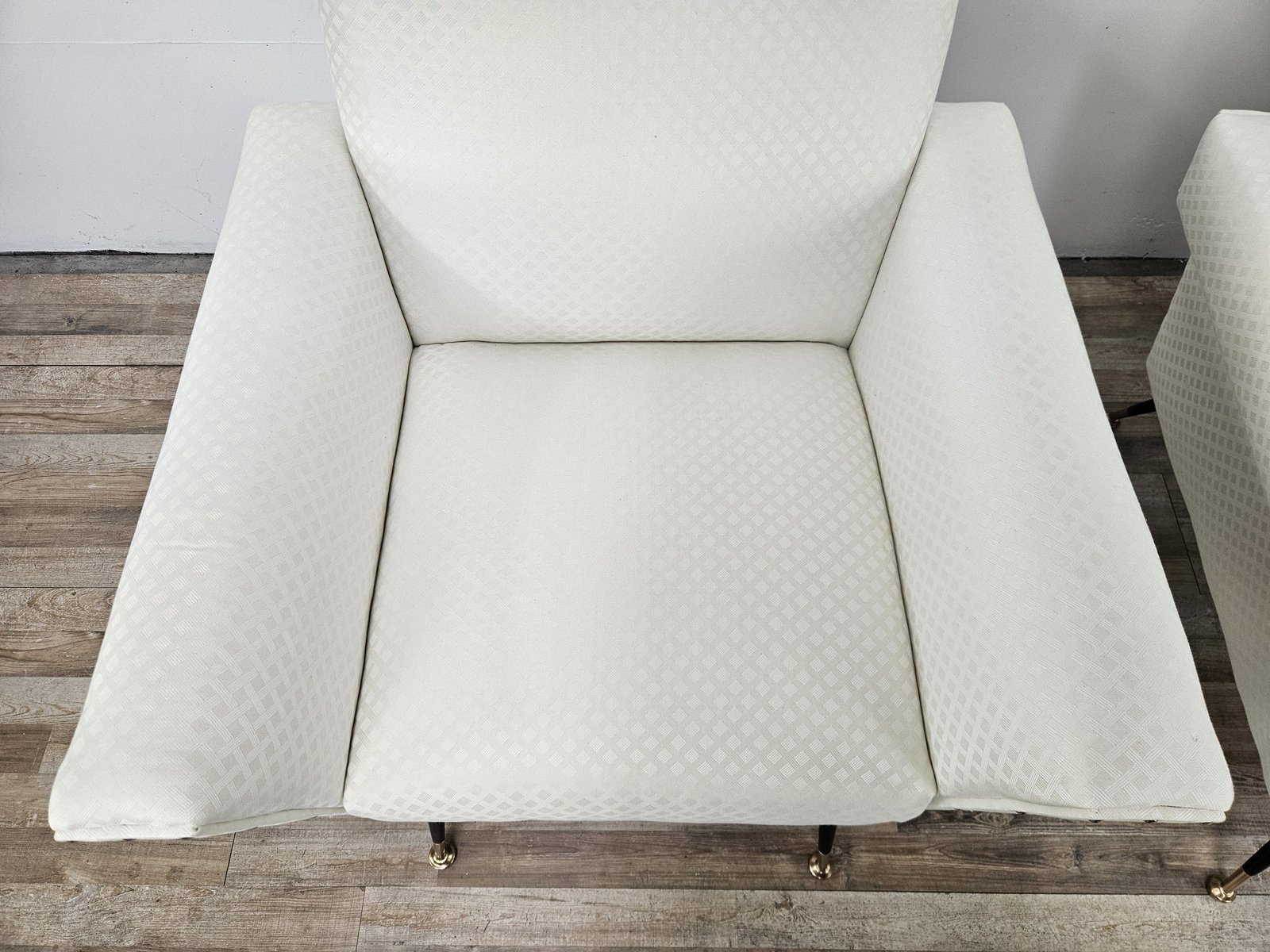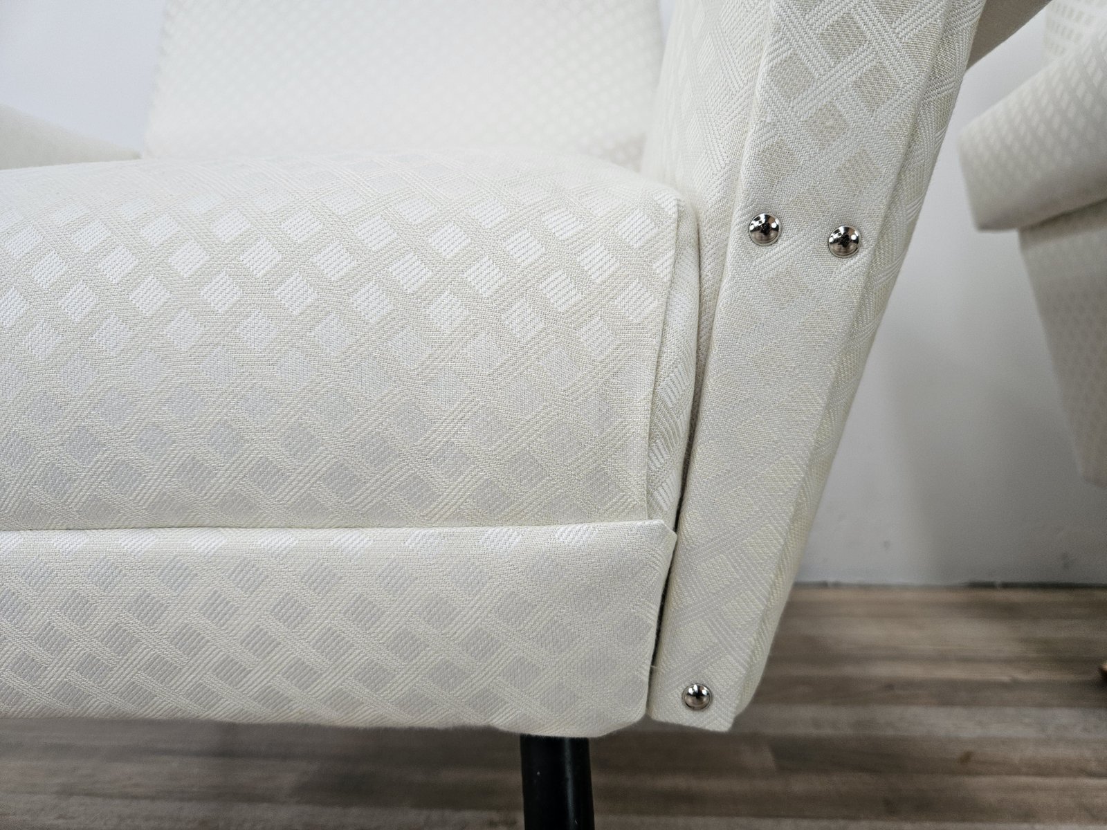 Mid-Century Modern Italian Chairs in Cream Fabric with Iron Legs, 1950, Set of 2