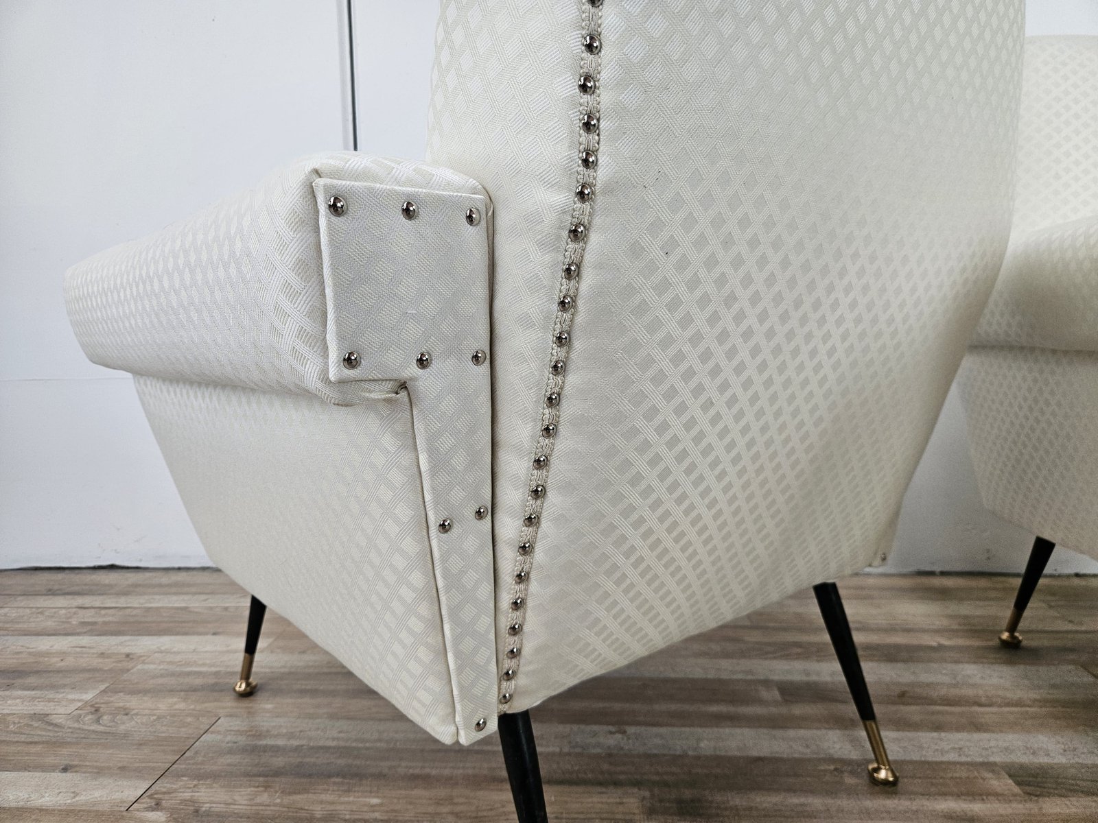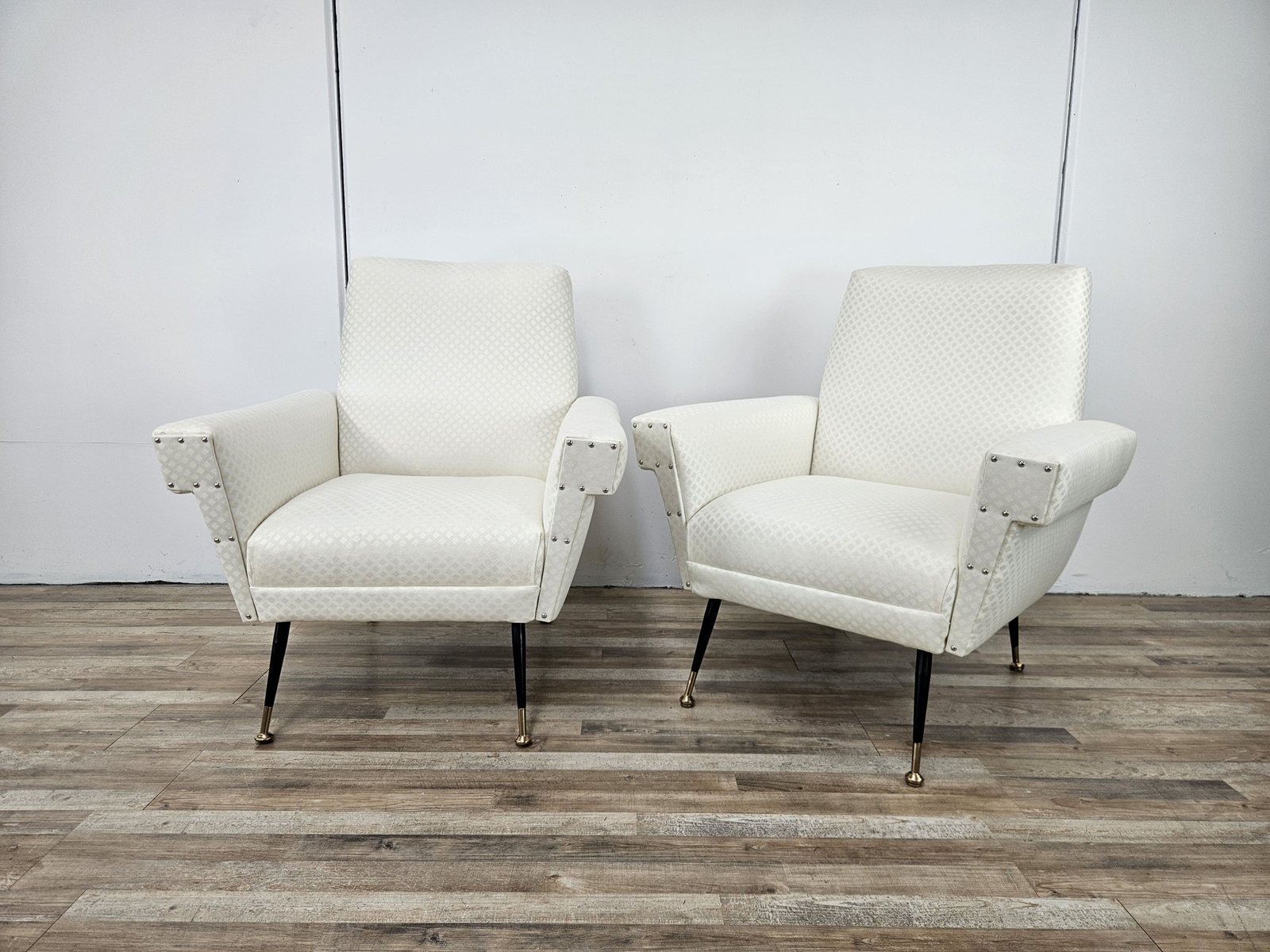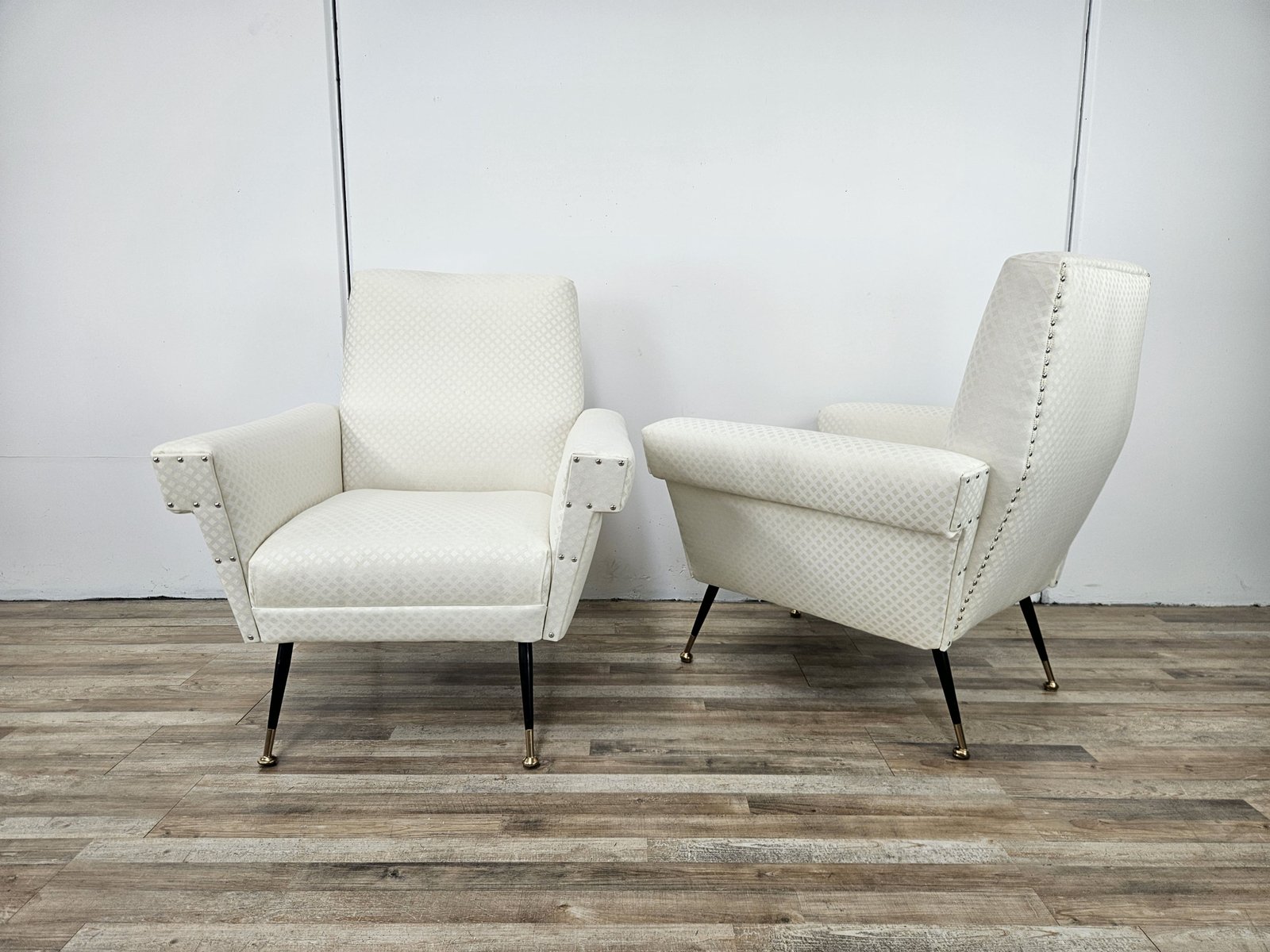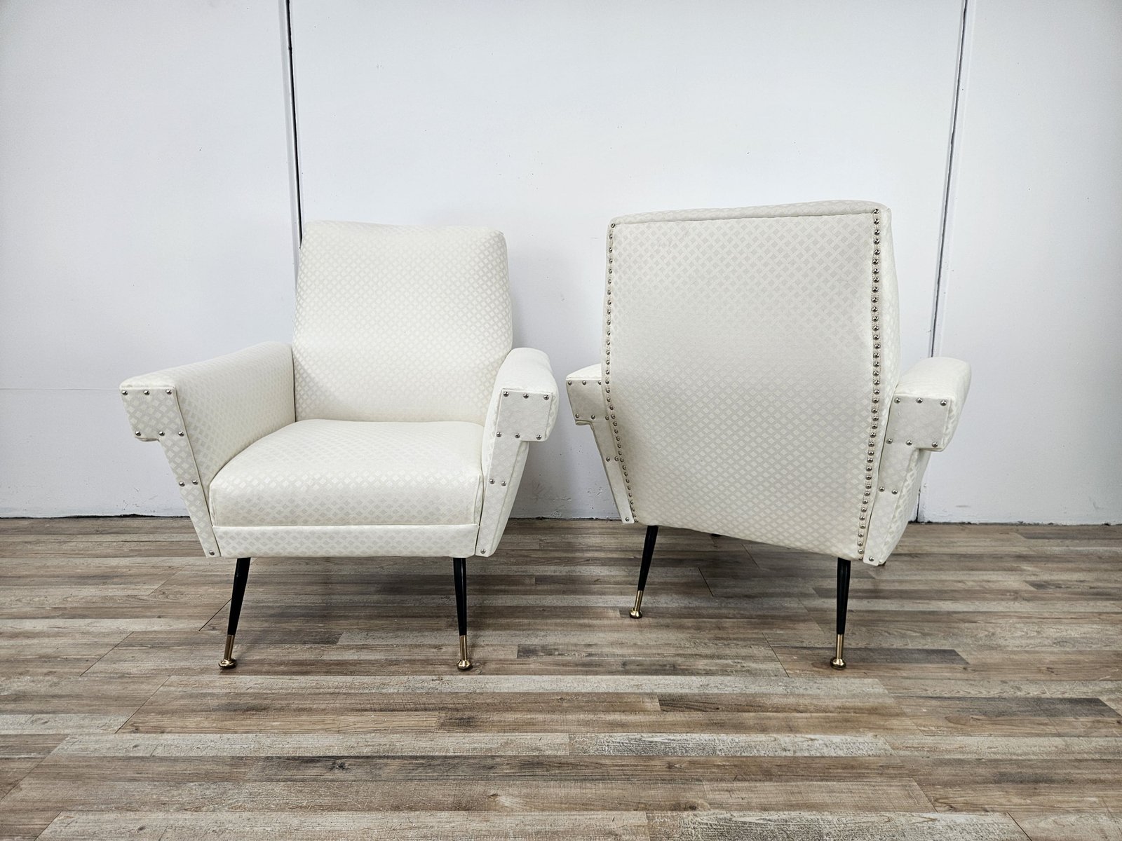 Mid-Century Modern Italian Chairs in Cream Fabric with Iron Legs, 1950, Set of 2