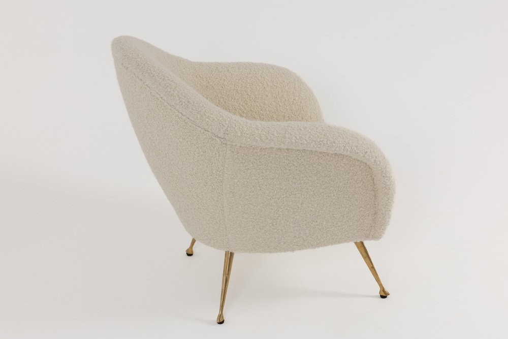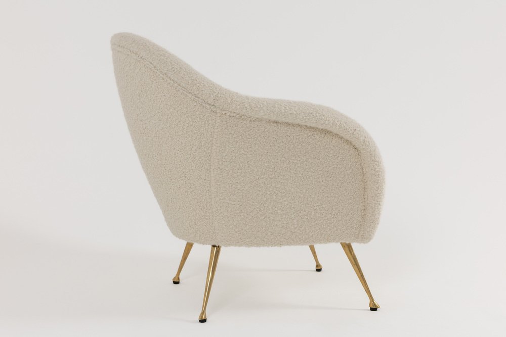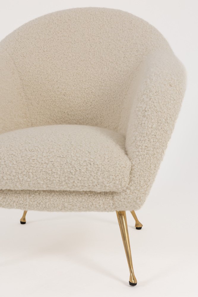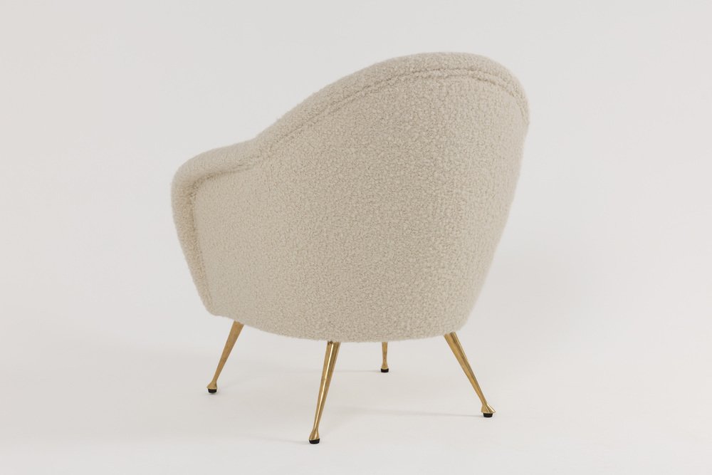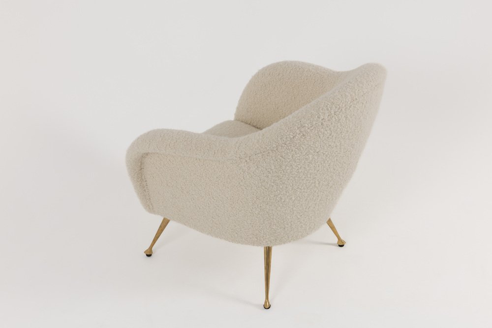 Mid-Century Modern Italian Lounge Chair in Alpaca Boucle, 1950s
