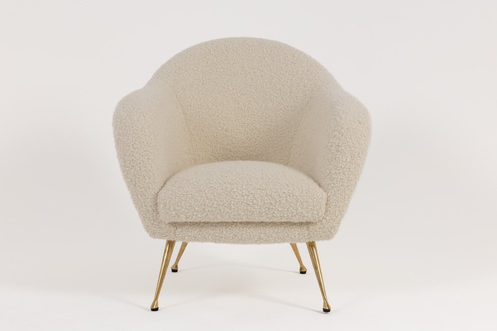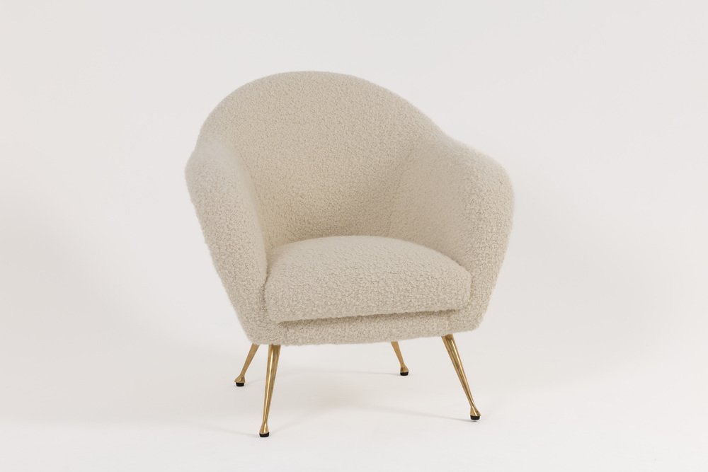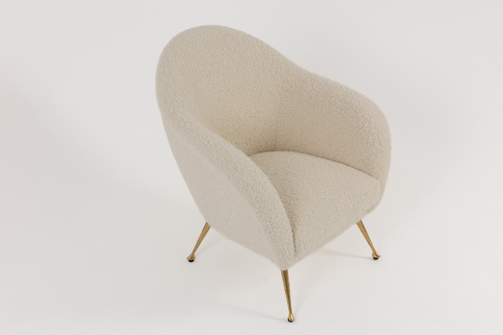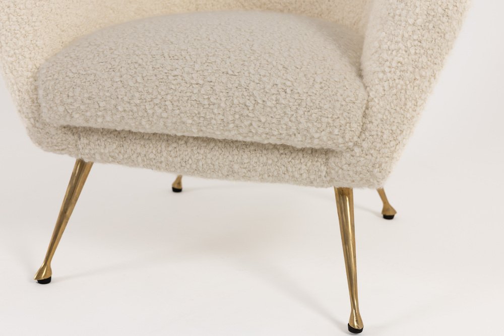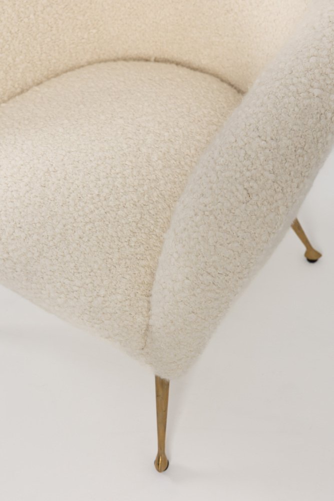 Mid-Century Modern Italian Lounge Chair in Alpaca Boucle, 1950s
