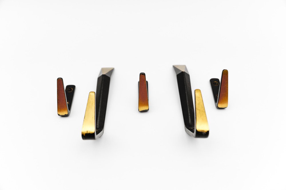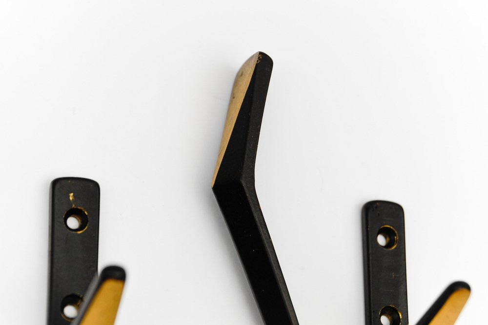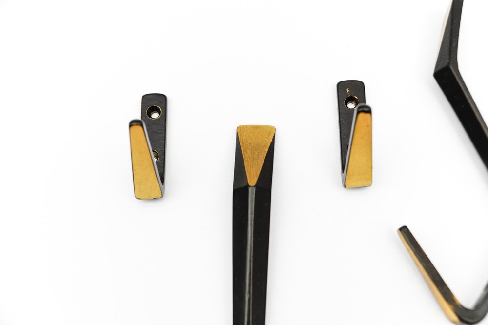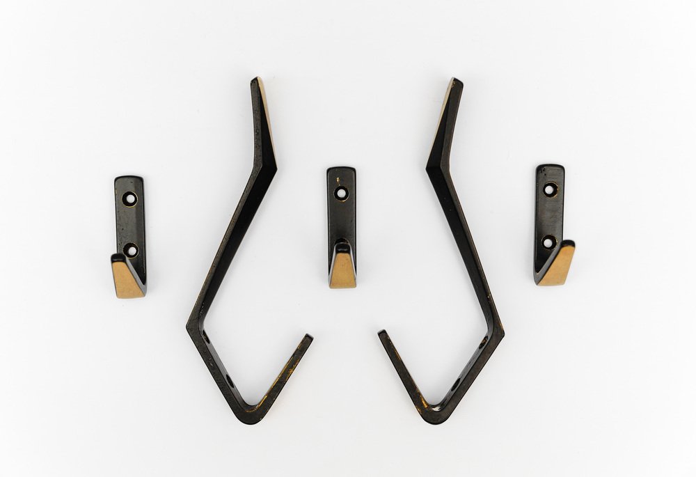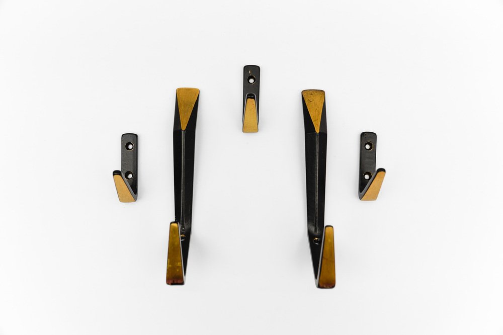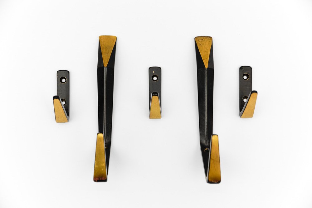 Mid-Century Modern Solid Brass Wall Hooks, Austria, 1950s, Set of 5
