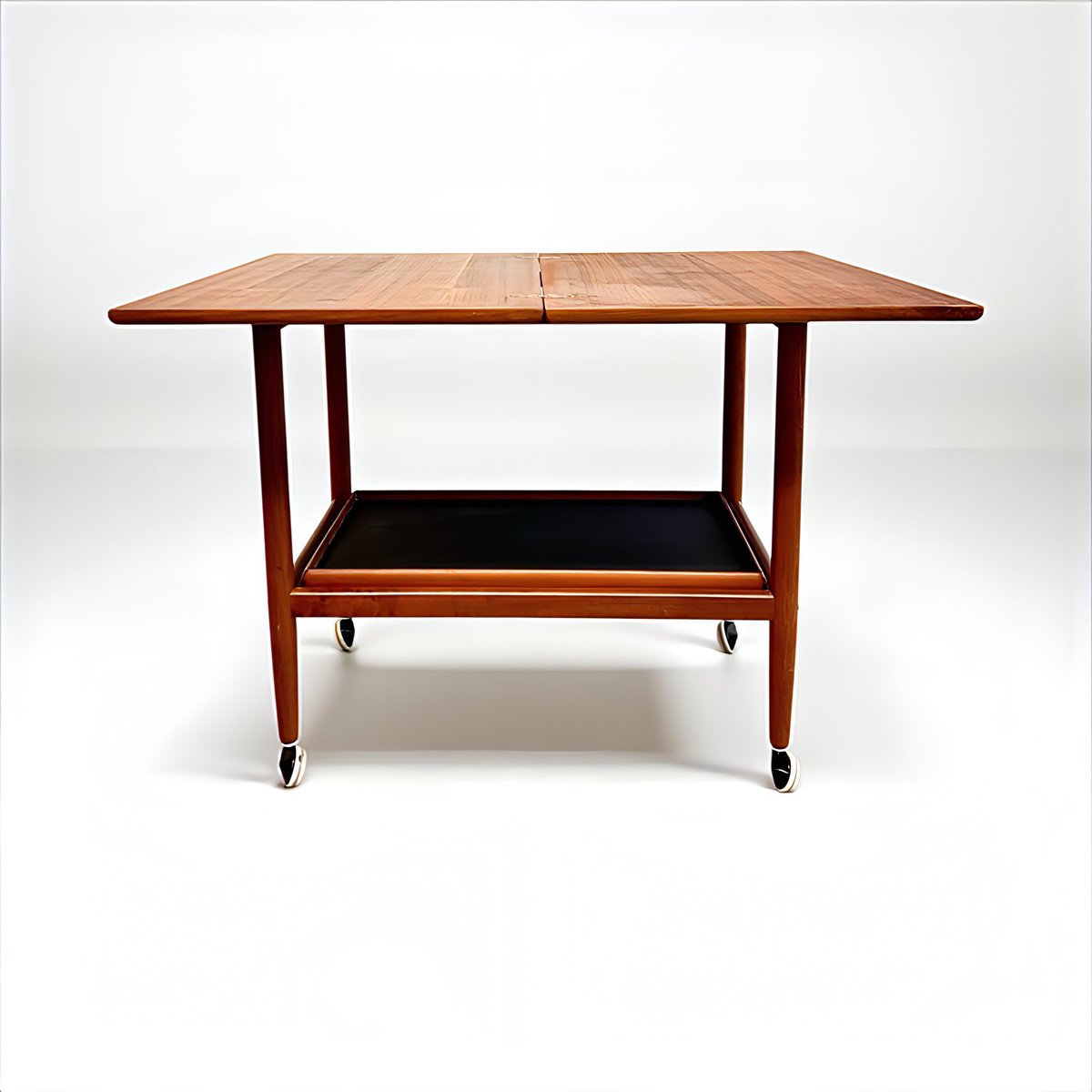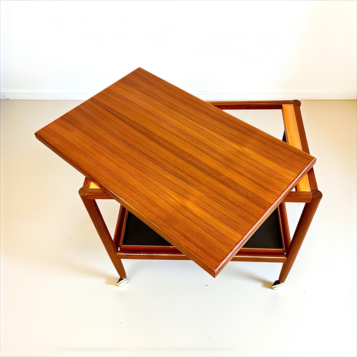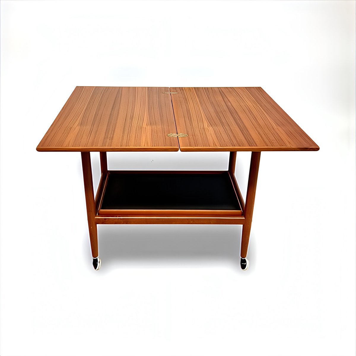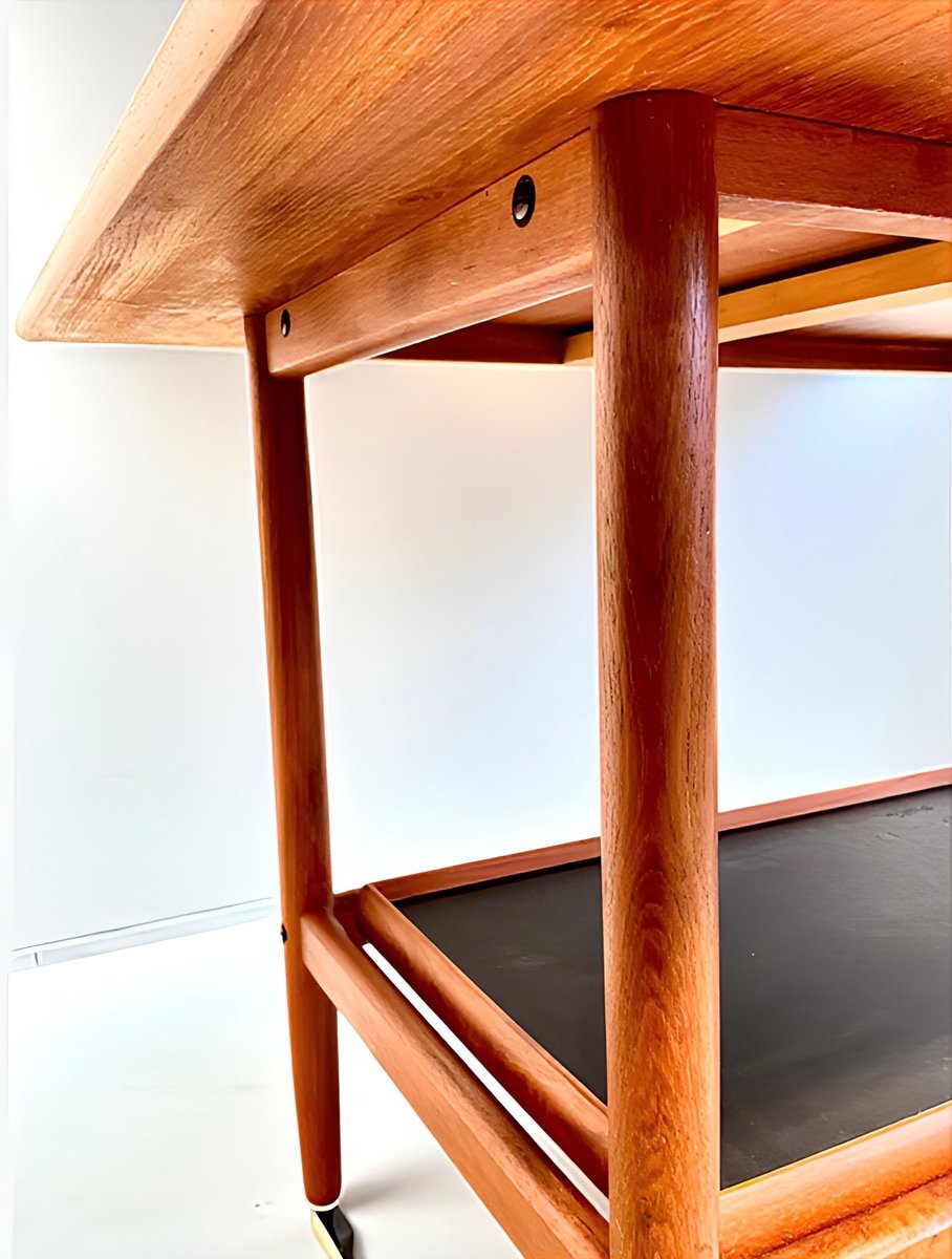Mid-Century Modern Teak Folding Side Table or Serving Trolley with Brass Fittings attributed to Arrebo Mobler, Denmark, 1960s