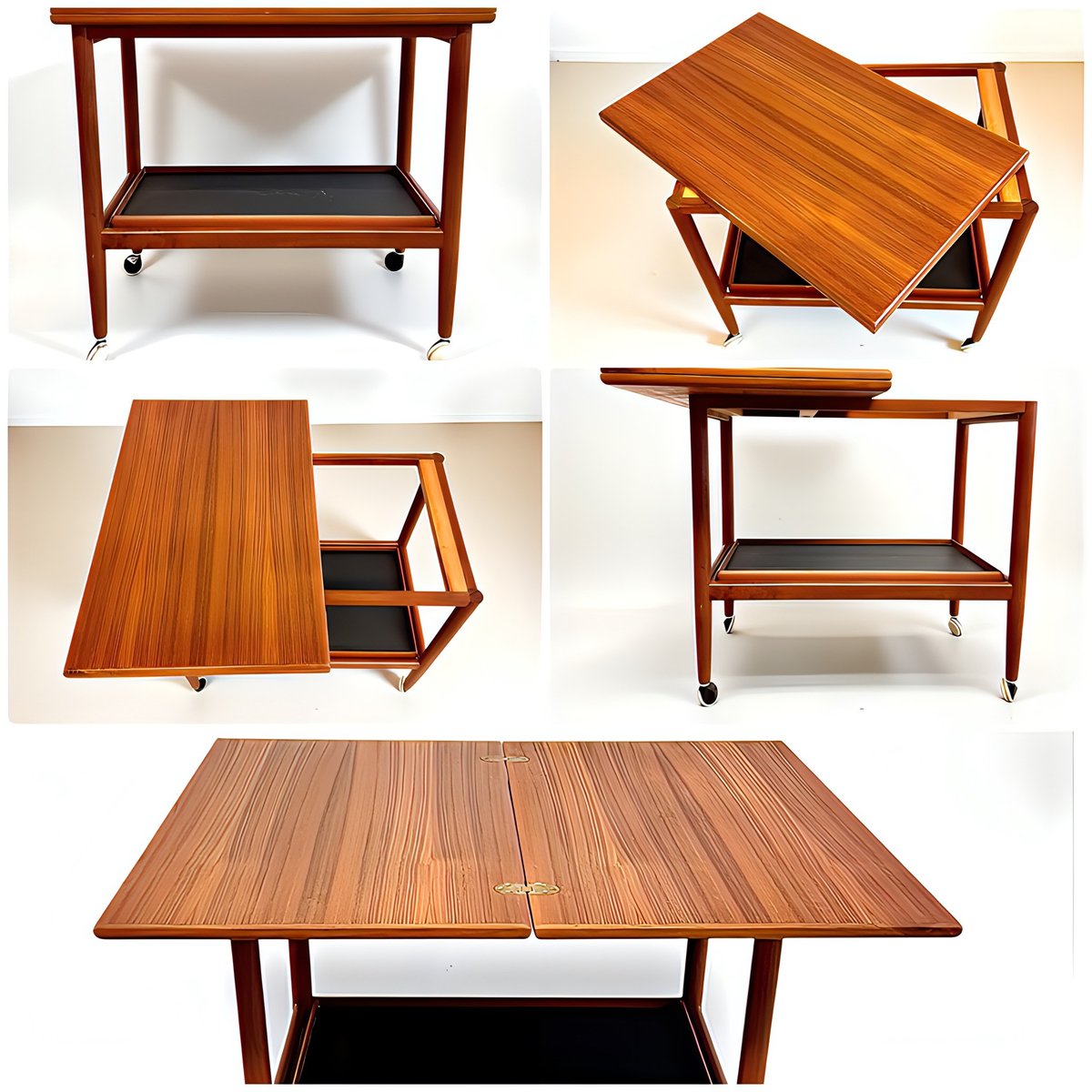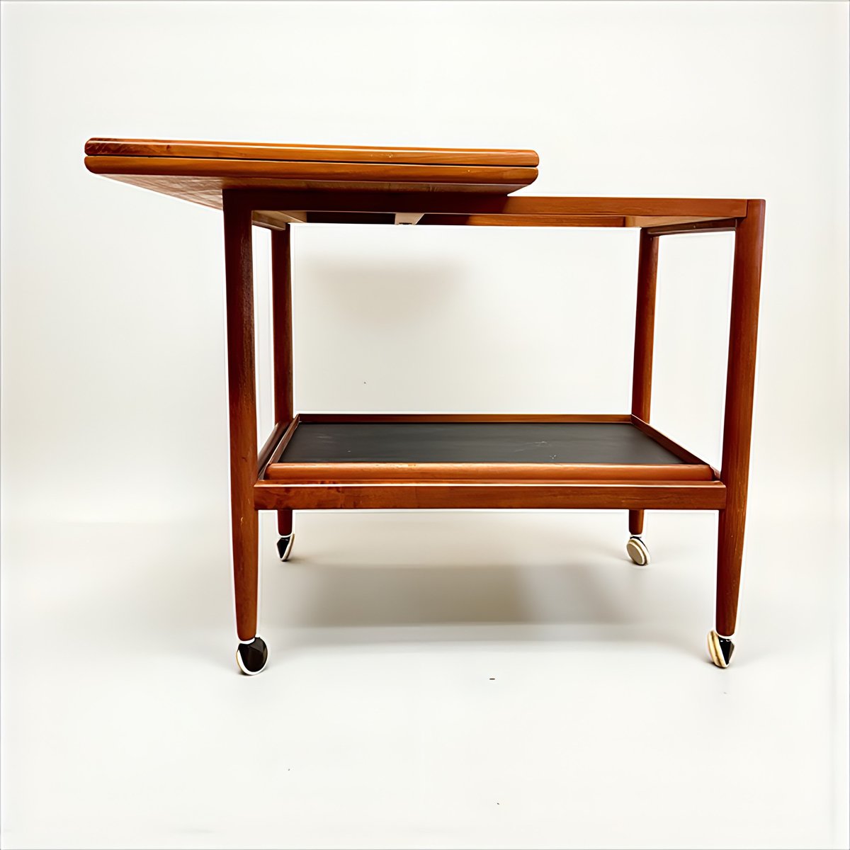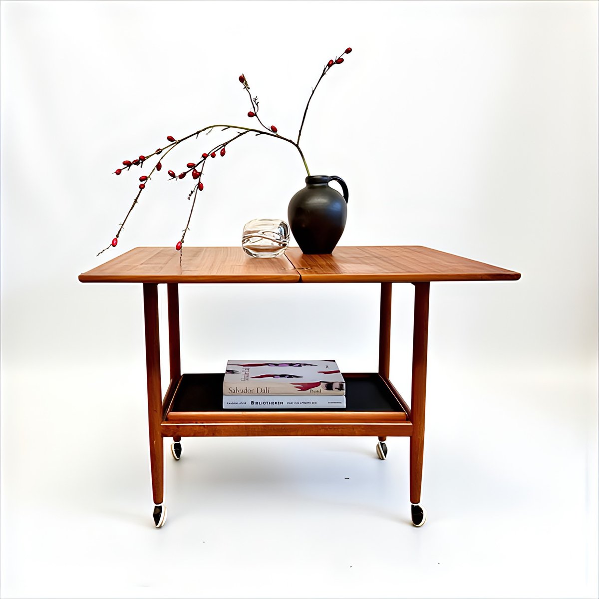 Mid-Century Modern Teak Folding Side Table or Serving Trolley with Brass Fittings attributed to Arrebo Mobler, Denmark, 1960s