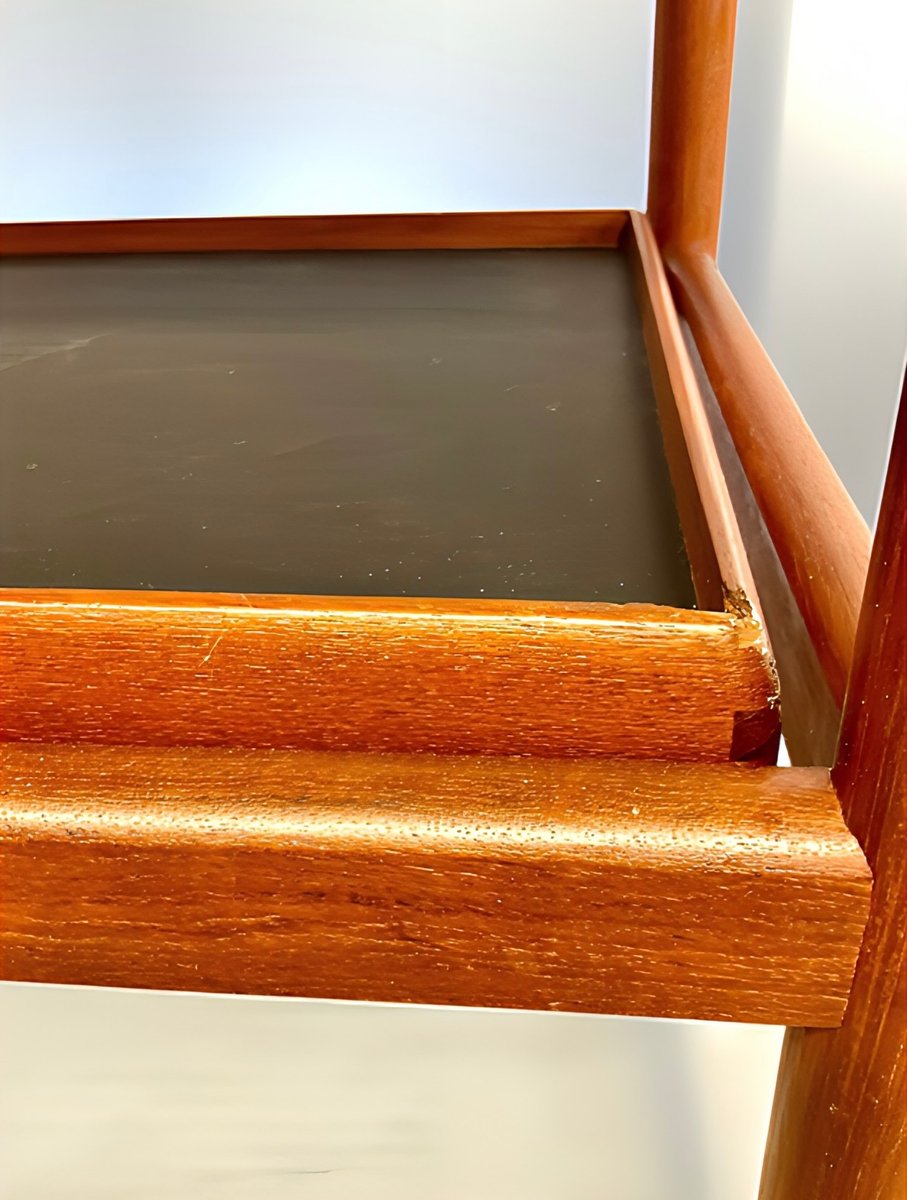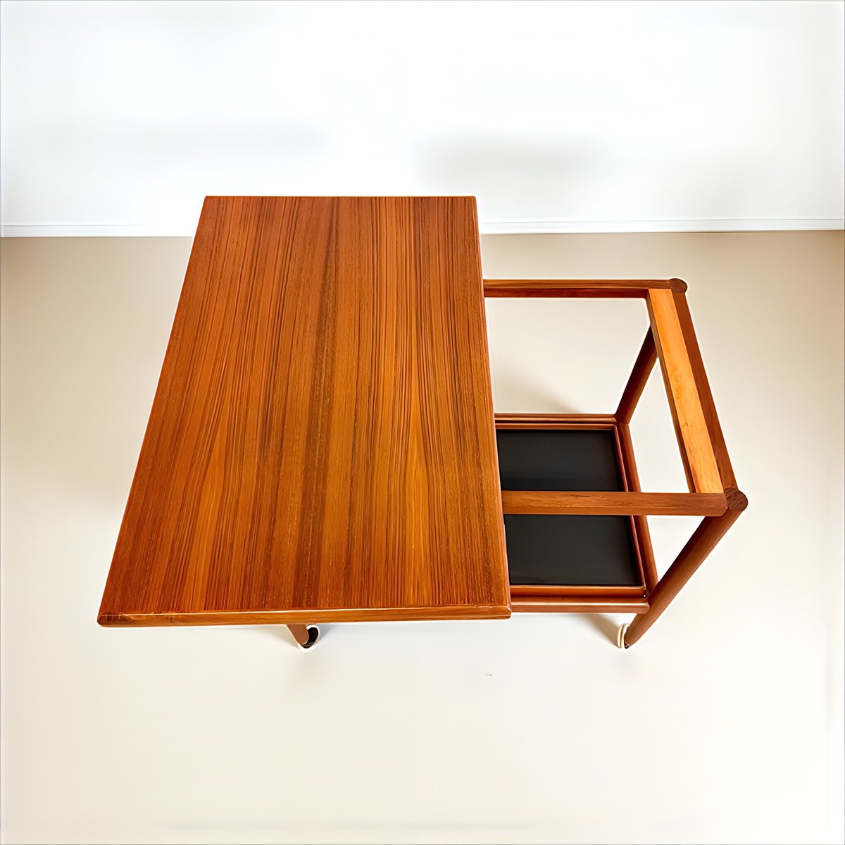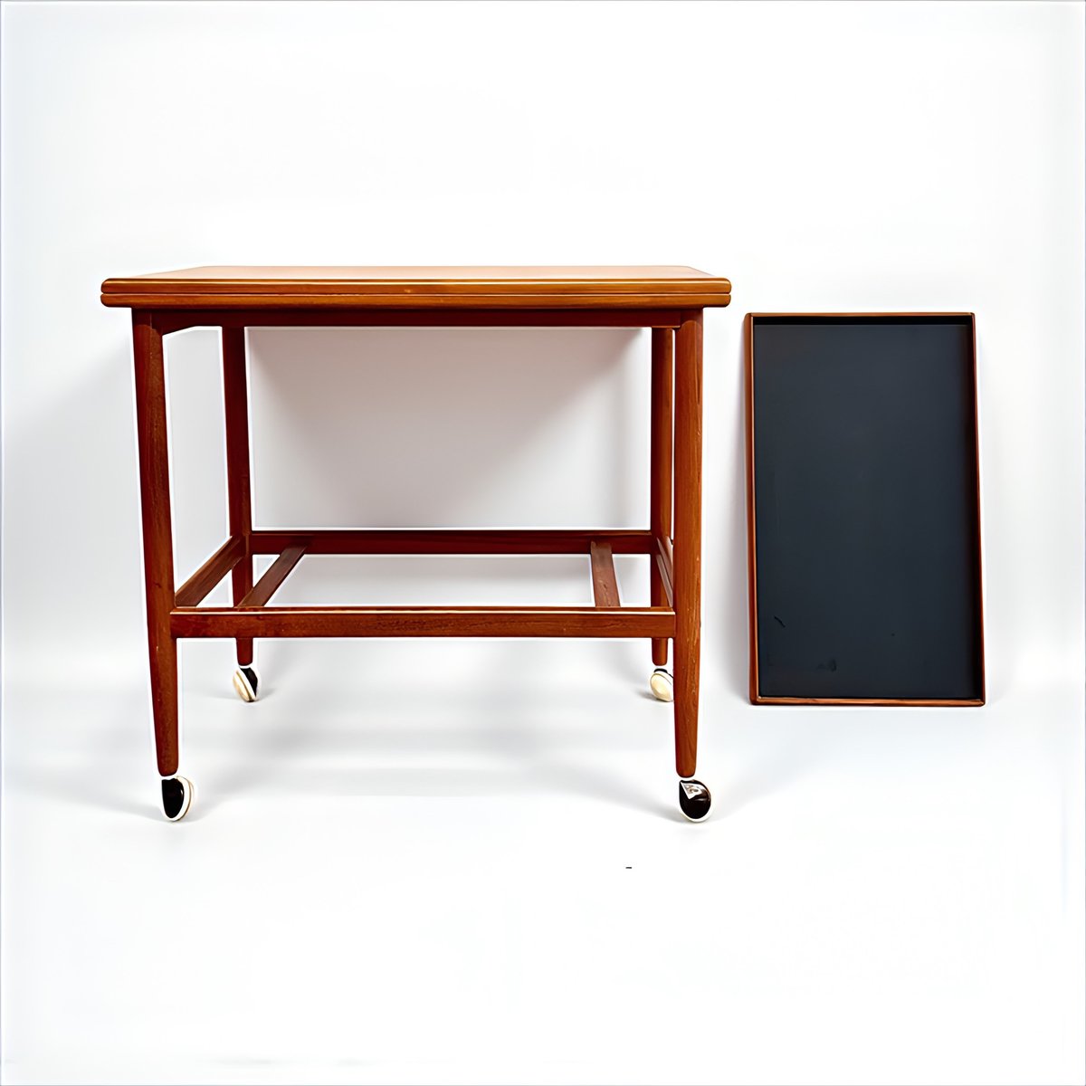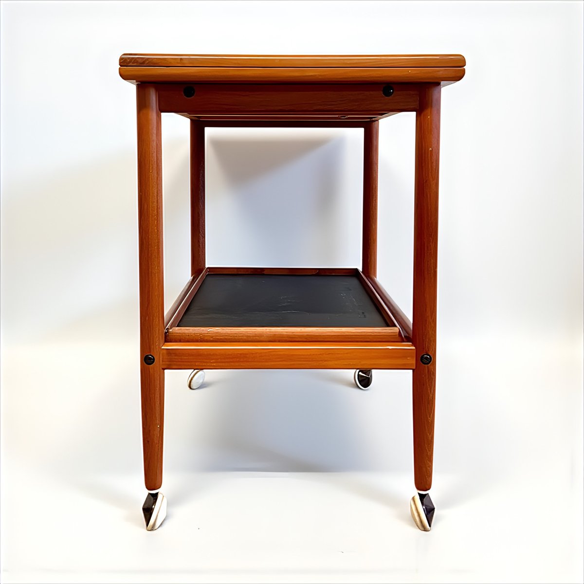 Mid-Century Modern Teak Folding Side Table or Serving Trolley with Brass Fittings attributed to Arrebo Mobler, Denmark, 1960s