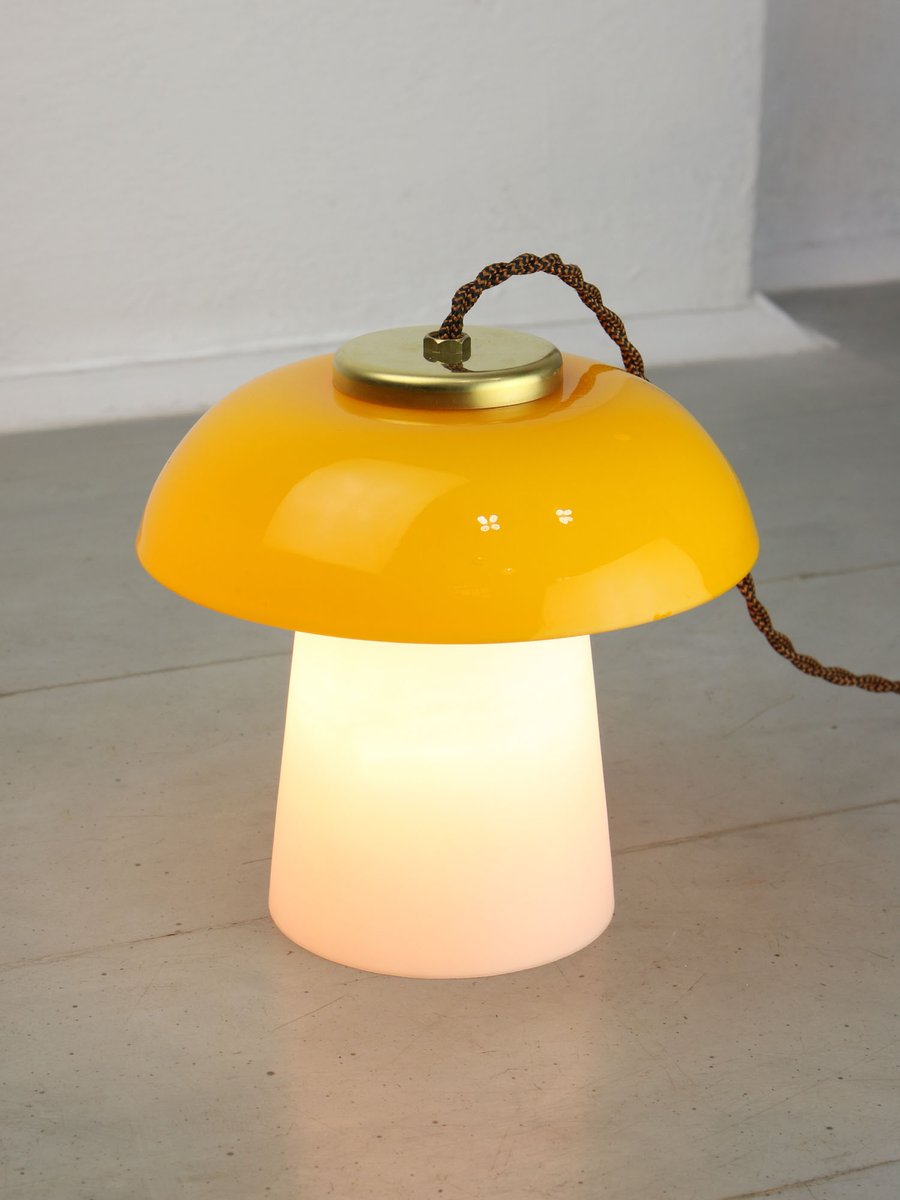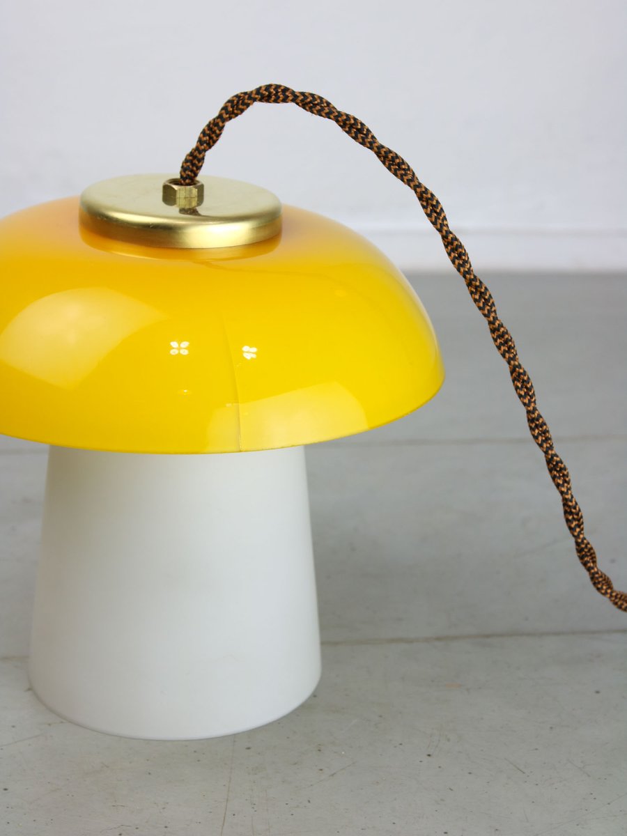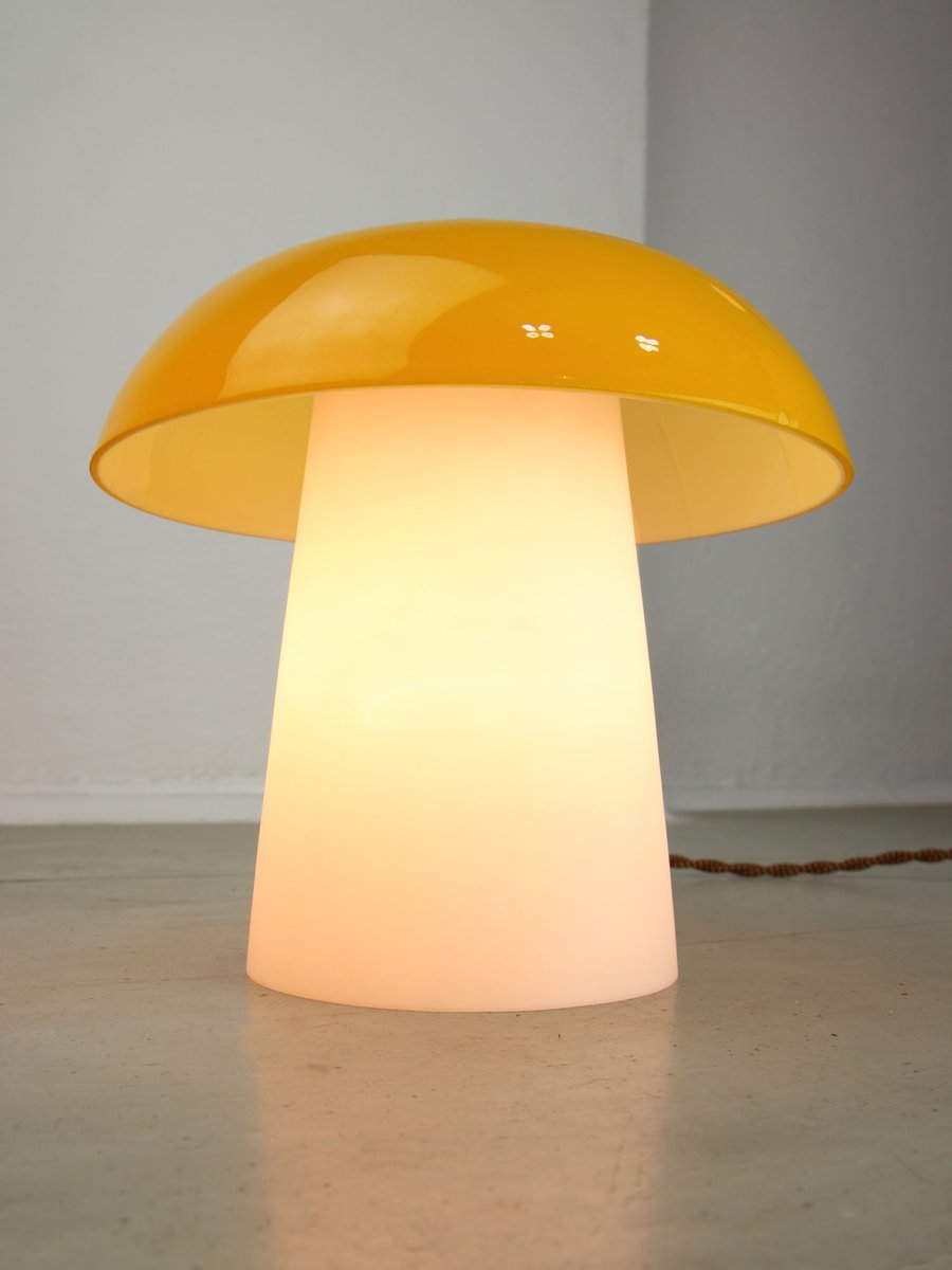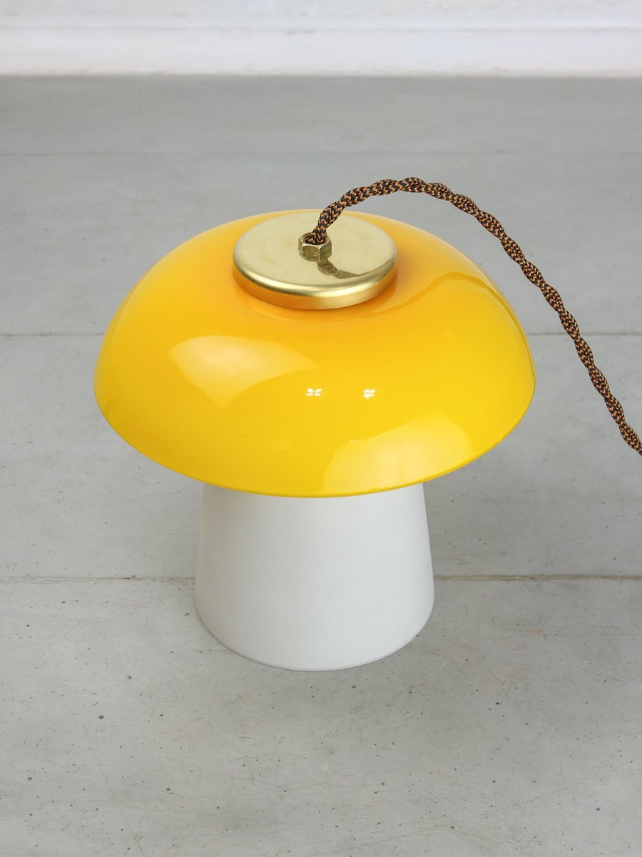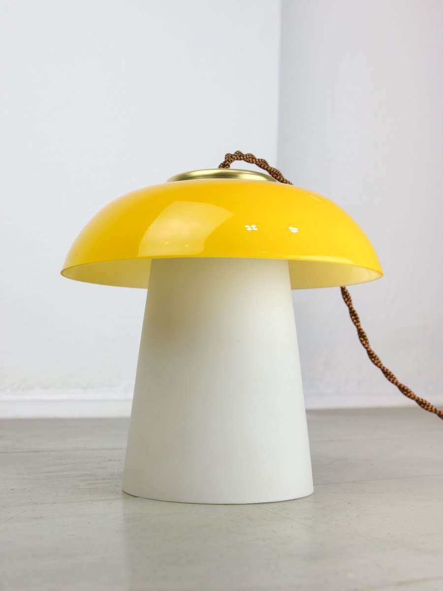 Mid-Century Mushroom Table Lamp in Yellow Glass and Brass