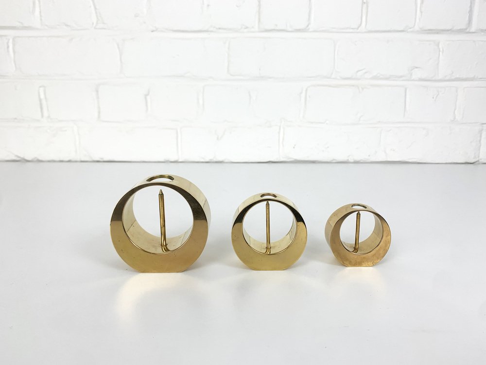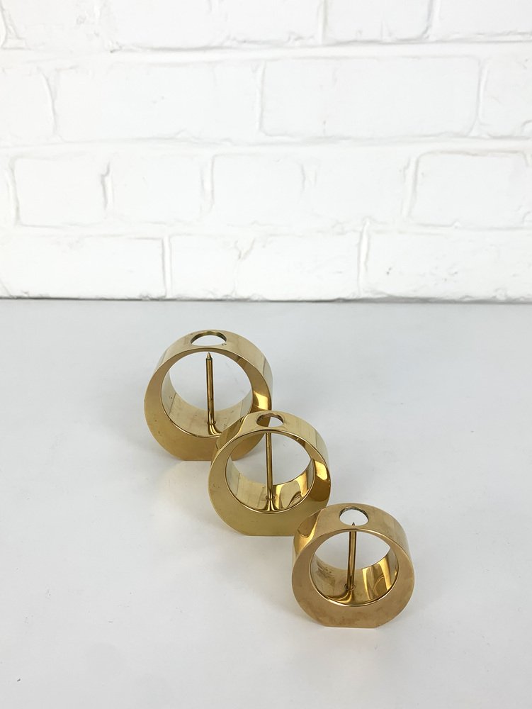 Mid-Century Scandinavian Candleholders in Brass by Arthur Pe, 1950s, Set of 3