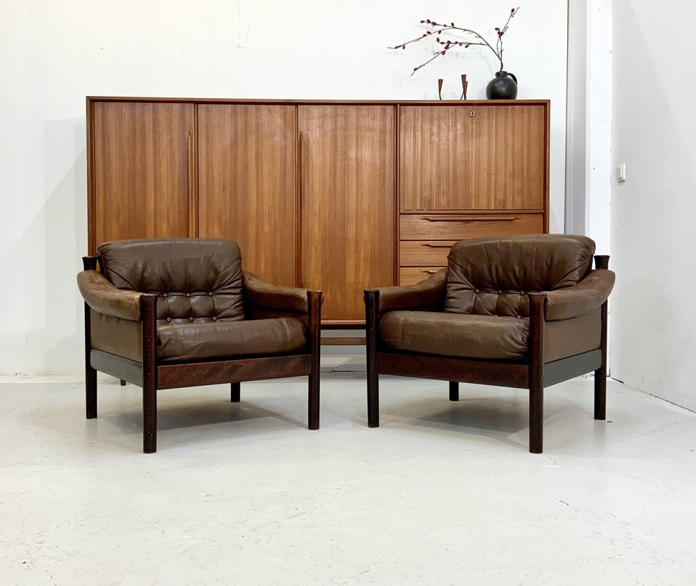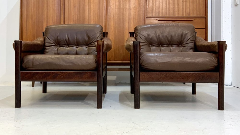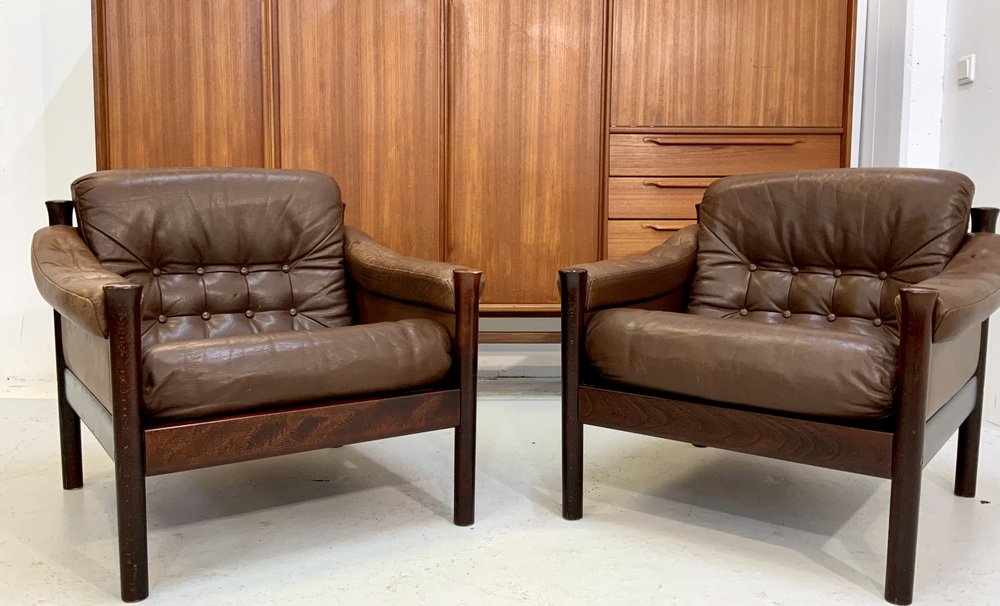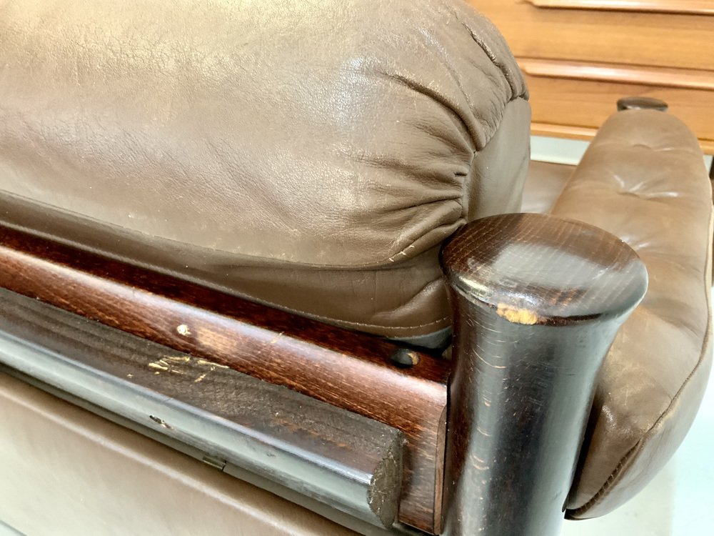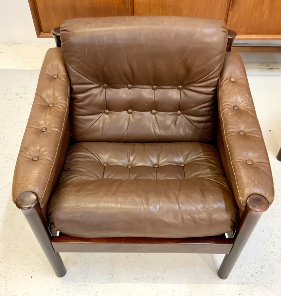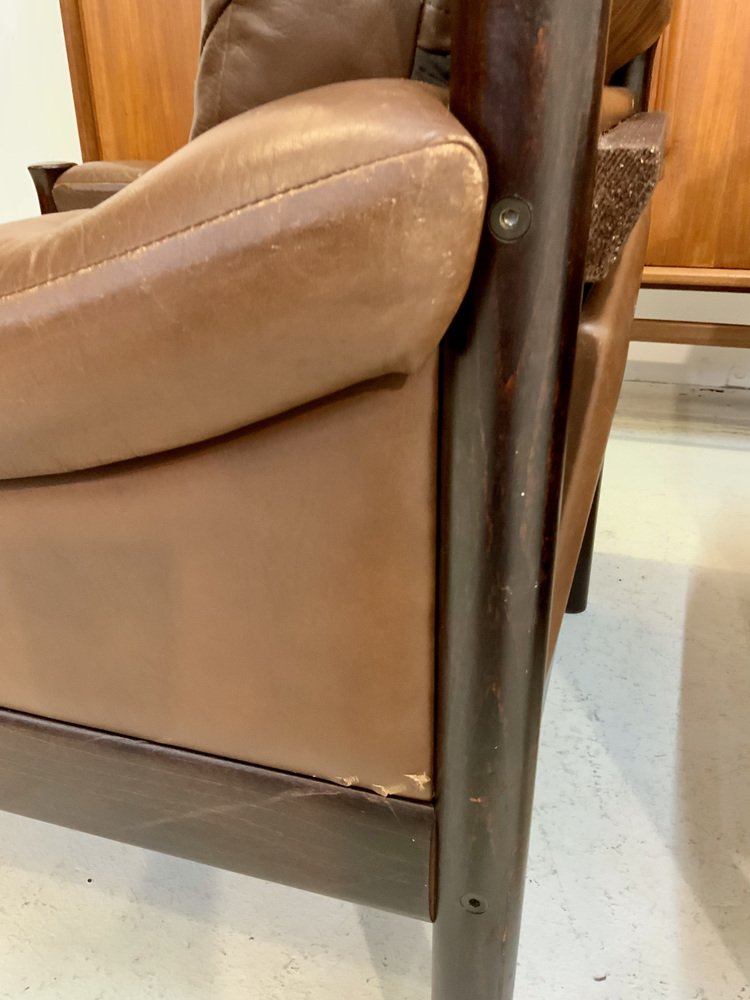 Mid-Century Scandinavian Safari Leather Lounge Chair by Torbjorn Afdal for Bruksbo, Norway, 1960s