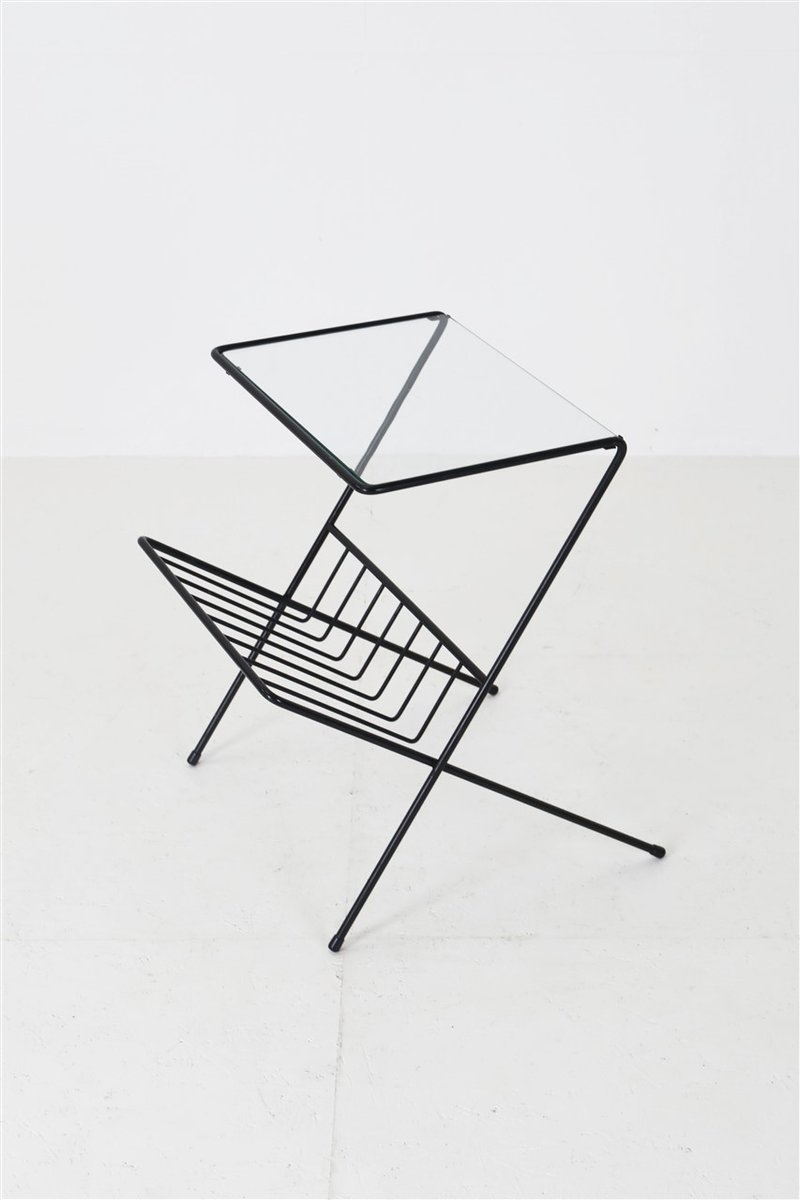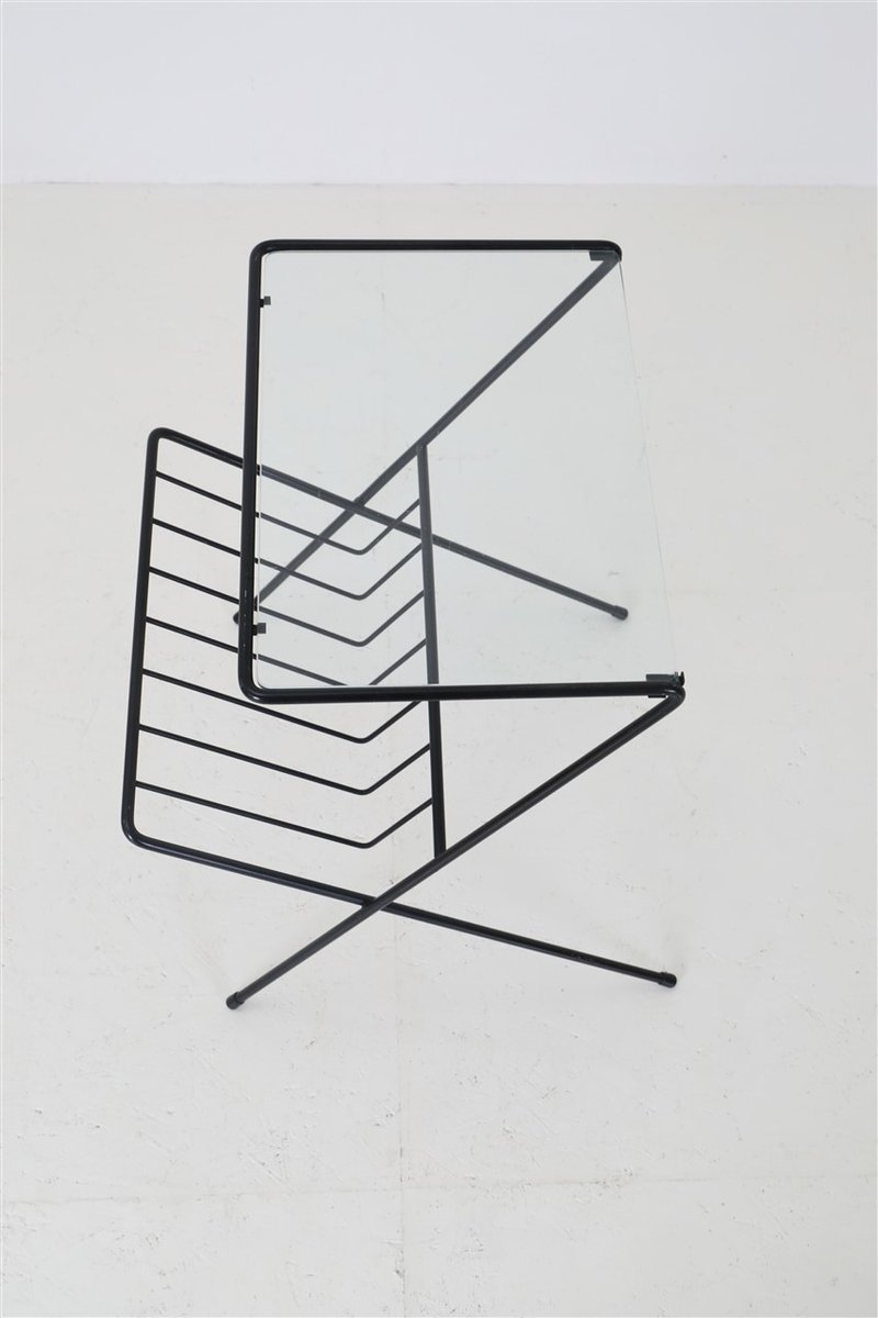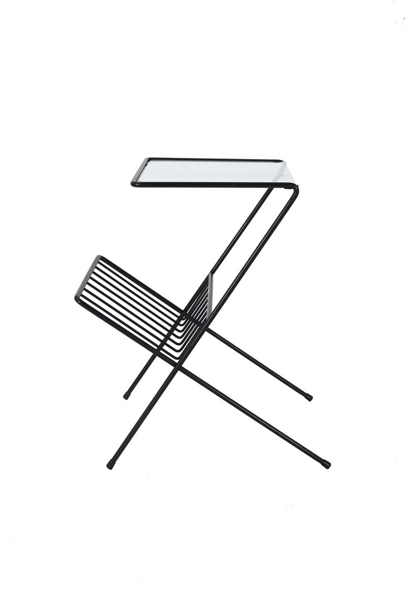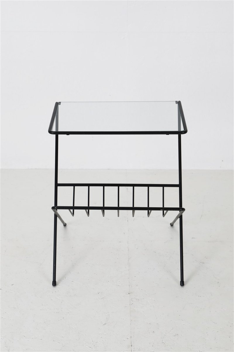 Mid-Century Side Table with Magazine Rack in Steel and Glass, 1960s
