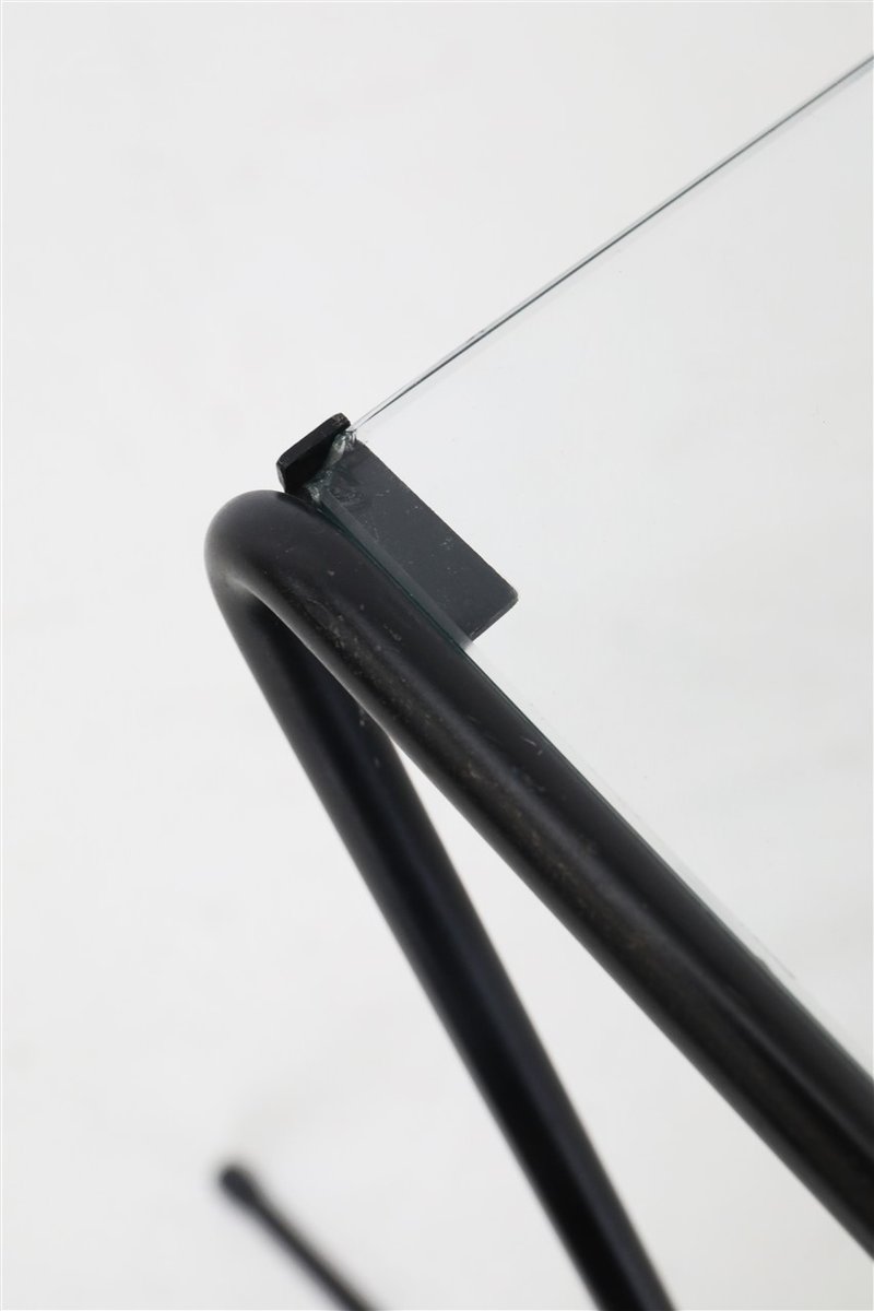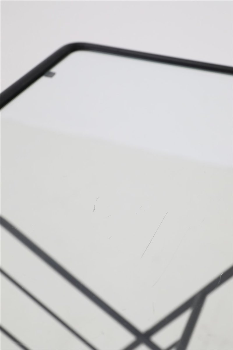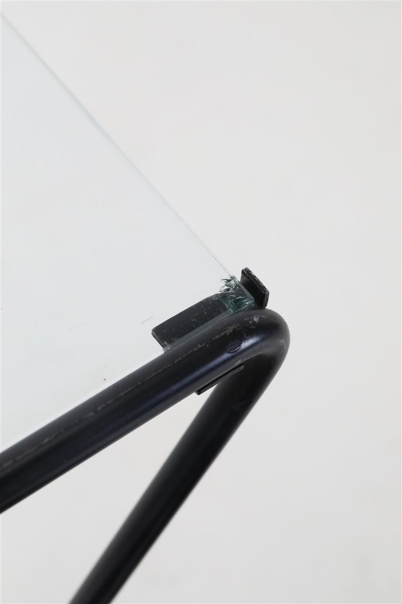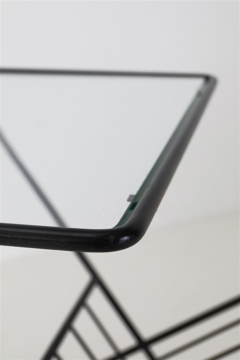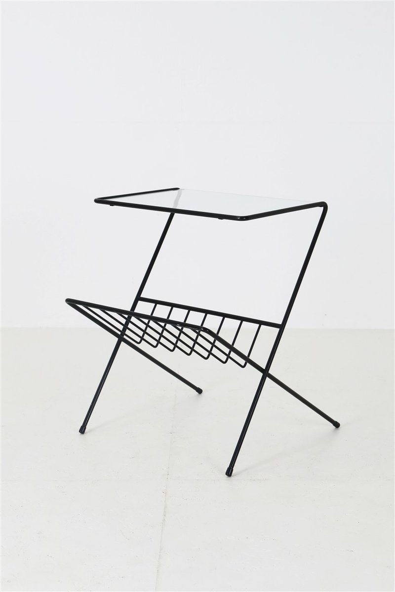 Mid-Century Side Table with Magazine Rack in Steel and Glass, 1960s