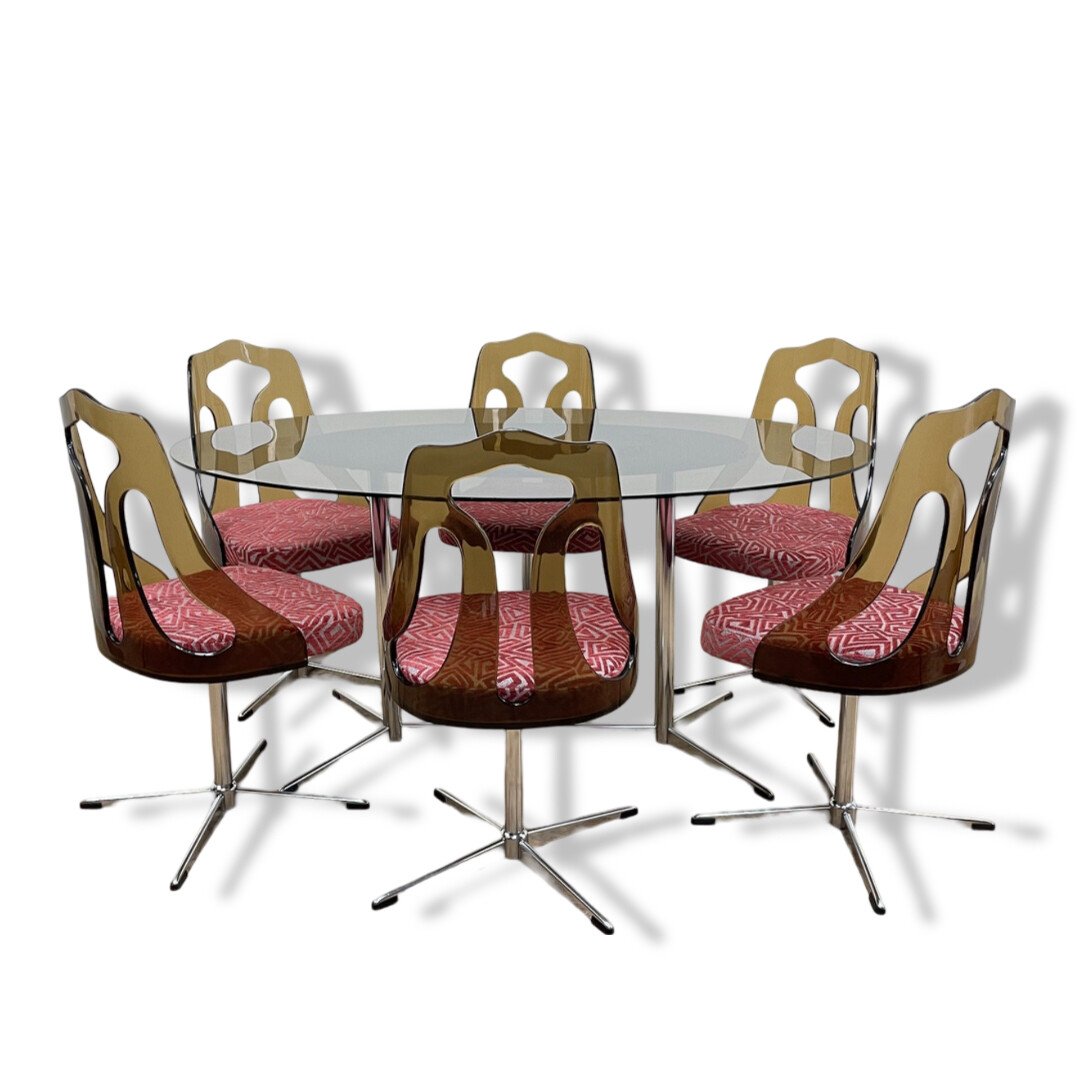 Mid-Century Smoked Acrylic Glass Chairs and Glass Table, 1960s, Set of 5