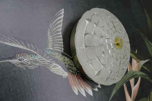 In the 1930s, Kalmar began collaborating with the Austrian Werkbund—an association founded by architects, artists, craftsmen, and manufacturers who were committed to modernist design principles. Kalmar created for the Werkbund a series of glass chandeliers and fixtures, which exuded meticulous construction and craftsmanship. Using traditional materials like glass, bronze, and brass, these designs lacked ornament, favoring instead a purist aesthetic.