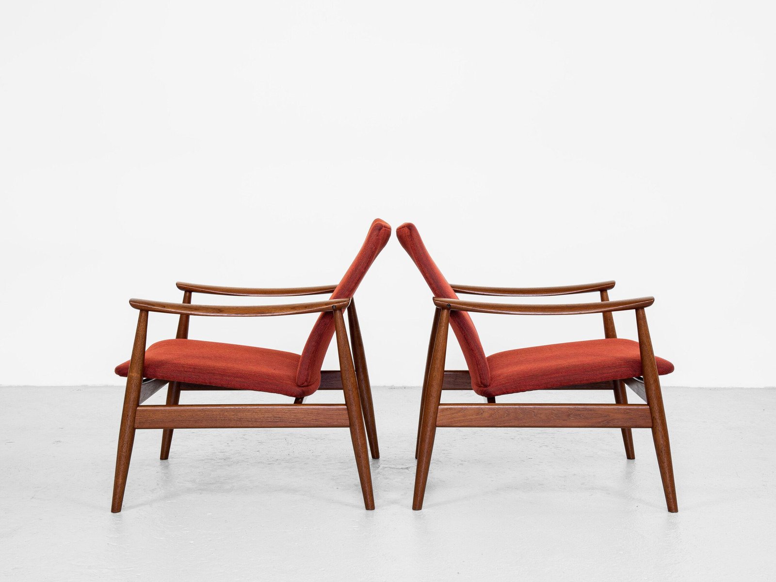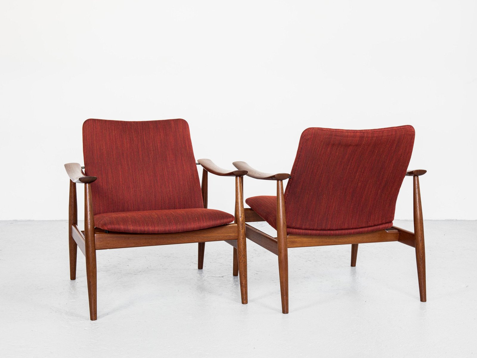 Midcentury Danish pair of easy chairs model 138 by Finn Juhl for France & Søn