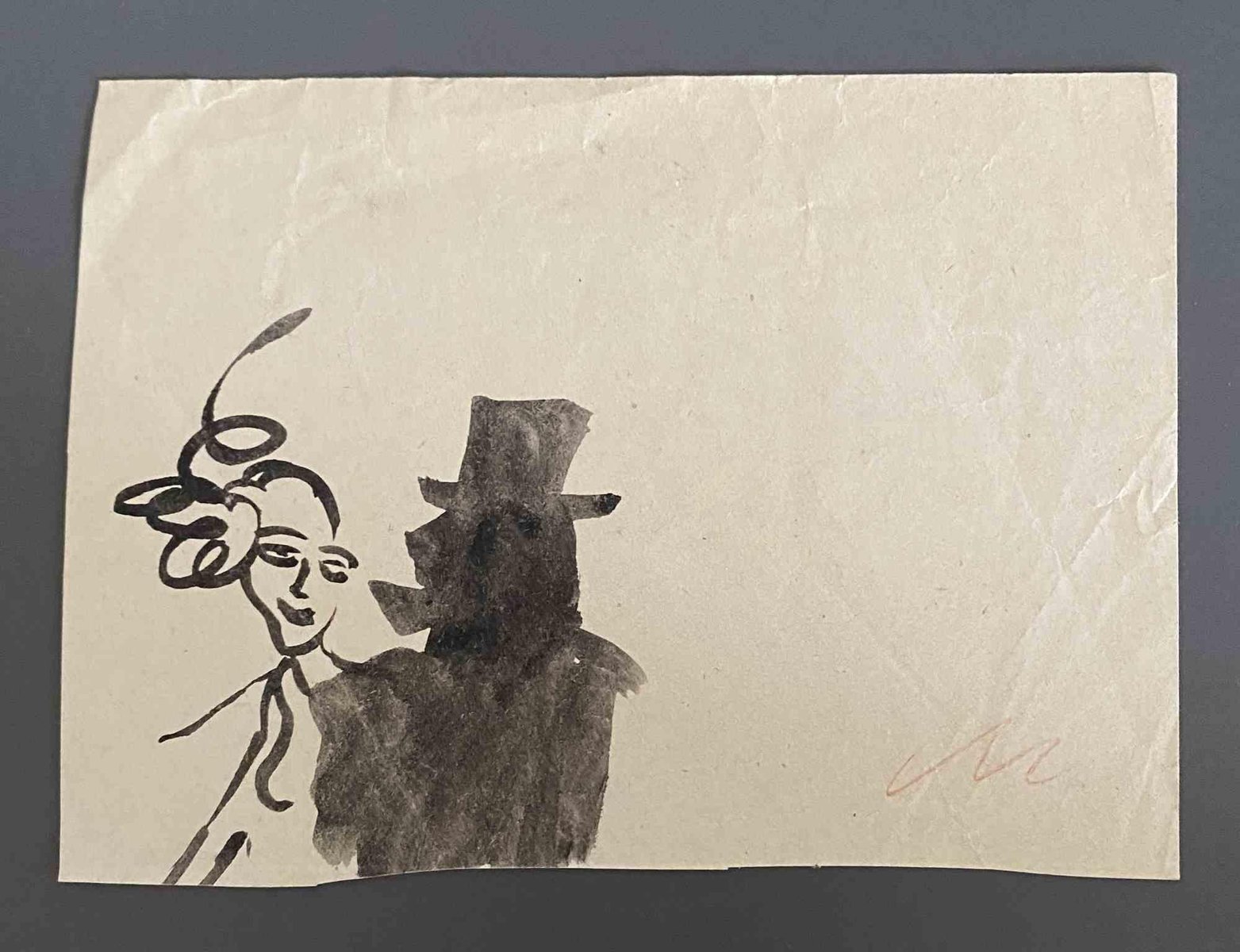 Figures is a watercolor Drawing realized by Mino Maccari (1924-1989) in the Mid-20th Century. Monogrammed. Good conditions. Mino Maccari (Siena, 1924-Rome, June 16, 1989) was an Italian writer, painter, engraver and journalist, winner of the Feltrinelli Prize for Painting in 1963 and first winner of the Forte dei Marmi Satira Prize in 1973.After completing his secondary education, he enrolls in university. An interventionist like many young people of his time, he took part in the Great War at the age of nineteen as a field artillery officer. At the end of the conflict he resumed his university studies in Siena and in 1920 he graduated in law. In 1924 he was called by Angiolo Bencini to take care of the printing of the magazine Il Selvaggio, openly uncompromising fascist, revolutionary and anti-bourgeois, where his first engravings were published. After a few years of coexistence between work at the newspaper and the law firm, at the beginning of 1926 he left the legal profession to take over the direction of Il Selvaggio which he would hold until 1942. In 1928 he was the author of the small book published by Vallecchi (Florence), Il Trastullo di Strapaese (little songs and engraved woodwinds) which collected fascist songs (the same book was seized several times from Antonio Gramsci during his detention). with the transfer of the editorial staff of the Selvaggio in 1925 from Colle di Val d'Elsa to Florence, Maccari collaborated with Ardengo Soffici, Ottone Rosai and Achille Lega. In the meantime, between 1927 and 1930, he made himself known to the general public as a painter by participating in various national exhibitions. Also in 1930 Maccari works in Turin at La Stampa as editor-in-chief and has the writer Curzio Malaparte as director. His presence in the cultural and editorial world of the fascist regime is very intense, he writes and collaborates with various magazines: Quadrivio, L'Italia Letteraria, L'Italiano and Omnibus by Leo Longanesi; then, during the war, in il Primato di Bottai and, subsequently again, in Il Mondo di Pannunzio (from the first number, in 1949), up to Documento by Federigo Valli. His graphic production is also vast, ranging from the Album of Vallecchi (1925), Il trastullo di Strapaese (1928) to Linoleum (1931). Maccari illustrated in 1934 La vecchia del Bal Bullier by Antonio Baldini and in 1942 he published the Album folder, followed by Come quando fuori Piove and Il superfluo illustrata.For his pictorial work full of evident chromatic accentuations and fast brushstrokes, the violent drawing combined with the lively stroke of the graphic sign of his engravings, he is recognized by critics as a complete artist. In 1962 he was also entrusted with the presidency of the Accademia di San Luca in Rome and managed to obtain a personal exhibition at Gallery 63 in New York. His production of drawings, watercolors, temperas, etc. is endless, sometimes in collaboration with prestigious publishing houses; it is worth mentioning, just as an excellent example, the 32 b/w and color drawings with which he illustrated Il gusto di vivere, a volume that collects writings by Giancarlo Fusco, edited by Natalia Aspesi and published by Laterza in 1985. Maccari, Sienese and great contradaiolo della Torre, painted the Palio of 16 August 1970 won by Selva. In 1973 he was awarded the Political Satire Award of Forte dei Marmi, an award born in that year. He died without great fanfare, in silence, at the age of ninety, in Rome on June 16, 1989.