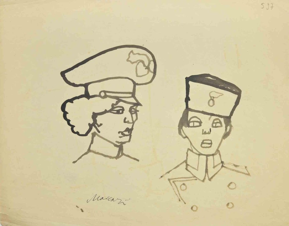 Officials is a Watercolor Drawing realized by Mino Maccari (1924-1989) in the 1960s. Hand-signed on the lower. Good condition. Mino Maccari (Siena, 1924-Rome, June 16, 1989) was an Italian writer, painter, engraver and journalist, winner of the Feltrinelli Prize for Painting in 1963 and first winner of the Forte dei Marmi Satira Prize in 1973.After completing his secondary education, he enrolls in university. An interventionist like many young people of his time, he took part in the Great War at the age of nineteen as a field artillery officer. At the end of the conflict he resumed his university studies in Siena and in 1920 he graduated in law. In 1924 he was called by Angiolo Bencini to take care of the printing of the magazine Il Selvaggio, openly uncompromising fascist, revolutionary and anti-bourgeois, where his first engravings were published. After a few years of coexistence between work at the newspaper and the law firm, at the beginning of 1926 he left the legal profession to take over the direction of Il Selvaggio which he would hold until 1942. In 1928 he was the author of the small book published by Vallecchi (Florence), Il Trastullo di Strapaese (little songs and engraved woodwinds) which collected fascist songs (the same book was seized several times from Antonio Gramsci during his detention). with the transfer of the editorial staff of the Selvaggio in 1925 from Colle di Val d'Elsa to Florence, Maccari collaborated with Ardengo Soffici, Ottone Rosai and Achille Lega. In the meantime, between 1927 and 1930, he made himself known to the general public as a painter by participating in various national exhibitions. Also in 1930 Maccari works in Turin at La Stampa as editor-in-chief and has the writer Curzio Malaparte as director. His presence in the cultural and editorial world of the fascist regime is very intense, he writes and collaborates with various magazines: Quadrivio, L'Italia Letteraria, L'Italiano and Omnibus by Leo Longanesi; then, during the war, in il Primato di Bottai and, subsequently again, in Il Mondo di Pannunzio (from the first number, in 1949), up to Documento by Federigo Valli. His graphic production is also vast, ranging from the Album of Vallecchi (1925), Il trastullo di Strapaese (1928) to Linoleum (1931). Maccari illustrated in 1934 La vecchia del Bal Bullier by Antonio Baldini and in 1942 he published the Album folder, followed by Come quando fuori Piove and Il superfluo illustrata.For his pictorial work full of evident chromatic accentuations and fast brushstrokes, the violent drawing combined with the lively stroke of the graphic sign of his engravings, he is recognized by critics as a complete artist. In 1962 he was also entrusted with the presidency of the Accademia di San Luca in Rome and managed to obtain a personal exhibition at Gallery 63 in New York. His production of drawings, watercolors, temperas, etc. is endless, sometimes in collaboration with prestigious publishing houses; it is worth mentioning, just as an excellent example, the 32 b/w and color drawings with which he illustrated Il gusto di vivere, a volume that collects writings by Giancarlo Fusco, edited by Natalia Aspesi and published by Laterza in 1985. Maccari, Sienese and great contradaiolo della Torre, painted the Palio of 16 August 1970 won by Selva. In 1973 he was awarded the Political Satire Award of Forte dei Marmi, an award born in that year. He died without great fanfare, in silence, at the age of ninety, in Rome on June 16, 1989.
