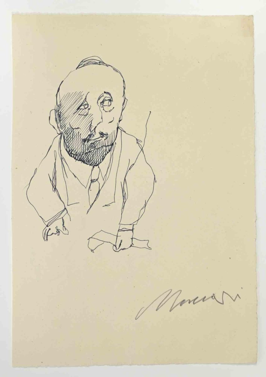 Portrait is a Pen Drawing realized by Mino Maccari (1924-1989) in the 1960s. Hand-signed on the lower, with another drawing on the rear. Good condition. Mino Maccari (Siena, 1924-Rome, June 16, 1989) was an Italian writer, painter, engraver and journalist, winner of the Feltrinelli Prize for Painting in 1963 and first winner of the Forte dei Marmi Satira Prize in 1973.After completing his secondary education, he enrolls in university. An interventionist like many young people of his time, he took part in the Great War at the age of nineteen as a field artillery officer. At the end of the conflict he resumed his university studies in Siena and in 1920 he graduated in law. In 1924 he was called by Angiolo Bencini to take care of the printing of the magazine Il Selvaggio, openly uncompromising fascist, revolutionary and anti-bourgeois, where his first engravings were published. After a few years of coexistence between work at the newspaper and the law firm, at the beginning of 1926 he left the legal profession to take over the direction of Il Selvaggio which he would hold until 1942. In 1928 he was the author of the small book published by Vallecchi (Florence), Il Trastullo di Strapaese (little songs and engraved woodwinds) which collected fascist songs (the same book was seized several times from Antonio Gramsci during his detention). with the transfer of the editorial staff of the Selvaggio in 1925 from Colle di Val d'Elsa to Florence, Maccari collaborated with Ardengo Soffici, Ottone Rosai and Achille Lega. In the meantime, between 1927 and 1930, he made himself known to the general public as a painter by participating in various national exhibitions. Also in 1930 Maccari works in Turin at La Stampa as editor-in-chief and has the writer Curzio Malaparte as director. His presence in the cultural and editorial world of the fascist regime is very intense, he writes and collaborates with various magazines: Quadrivio, L'Italia Letteraria, L'Italiano and Omnibus by Leo Longanesi; then, during the war, in il Primato di Bottai and, subsequently again, in Il Mondo di Pannunzio (from the first number, in 1949), up to Documento by Federigo Valli. His graphic production is also vast, ranging from the Album of Vallecchi (1925), Il trastullo di Strapaese (1928) to Linoleum (1931). Maccari illustrated in 1934 La vecchia del Bal Bullier by Antonio Baldini and in 1942 he published the Album folder, followed by Come quando fuori Piove and Il superfluo illustrata.For his pictorial work full of evident chromatic accentuations and fast brushstrokes, the violent drawing combined with the lively stroke of the graphic sign of his engravings, he is recognized by critics as a complete artist. In 1962 he was also entrusted with the presidency of the Accademia di San Luca in Rome and managed to obtain a personal exhibition at Gallery 63 in New York. His production of drawings, watercolors, temperas, etc. is endless, sometimes in collaboration with prestigious publishing houses; it is worth mentioning, just as an excellent example, the 32 b/w and color drawings with which he illustrated Il gusto di vivere, a volume that collects writings by Giancarlo Fusco, edited by Natalia Aspesi and published by Laterza in 1985. Maccari, Sienese and great contradaiolo della Torre, painted the Palio of 16 August 1970 won by Selva. In 1973 he was awarded the Political Satire Award of Forte dei Marmi, an award born in that year. He died without great fanfare, in silence, at the age of ninety, in Rome on June 16, 1989.