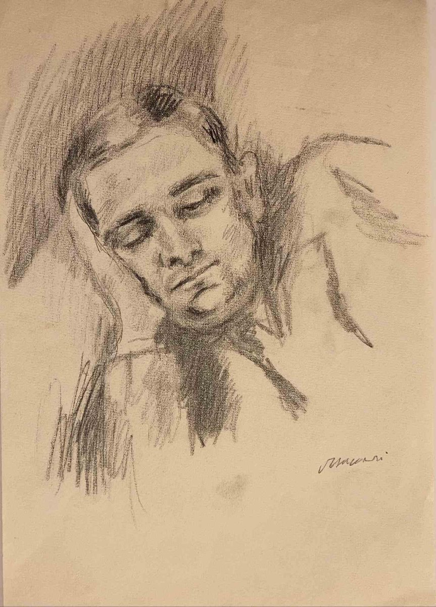 Mino Maccari, Portrait of Sleeping Man, Drawing, Mid-20th Century