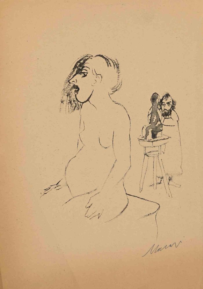 Mino Maccari, Sculptor and Model, China Ink, Mid 20th Century