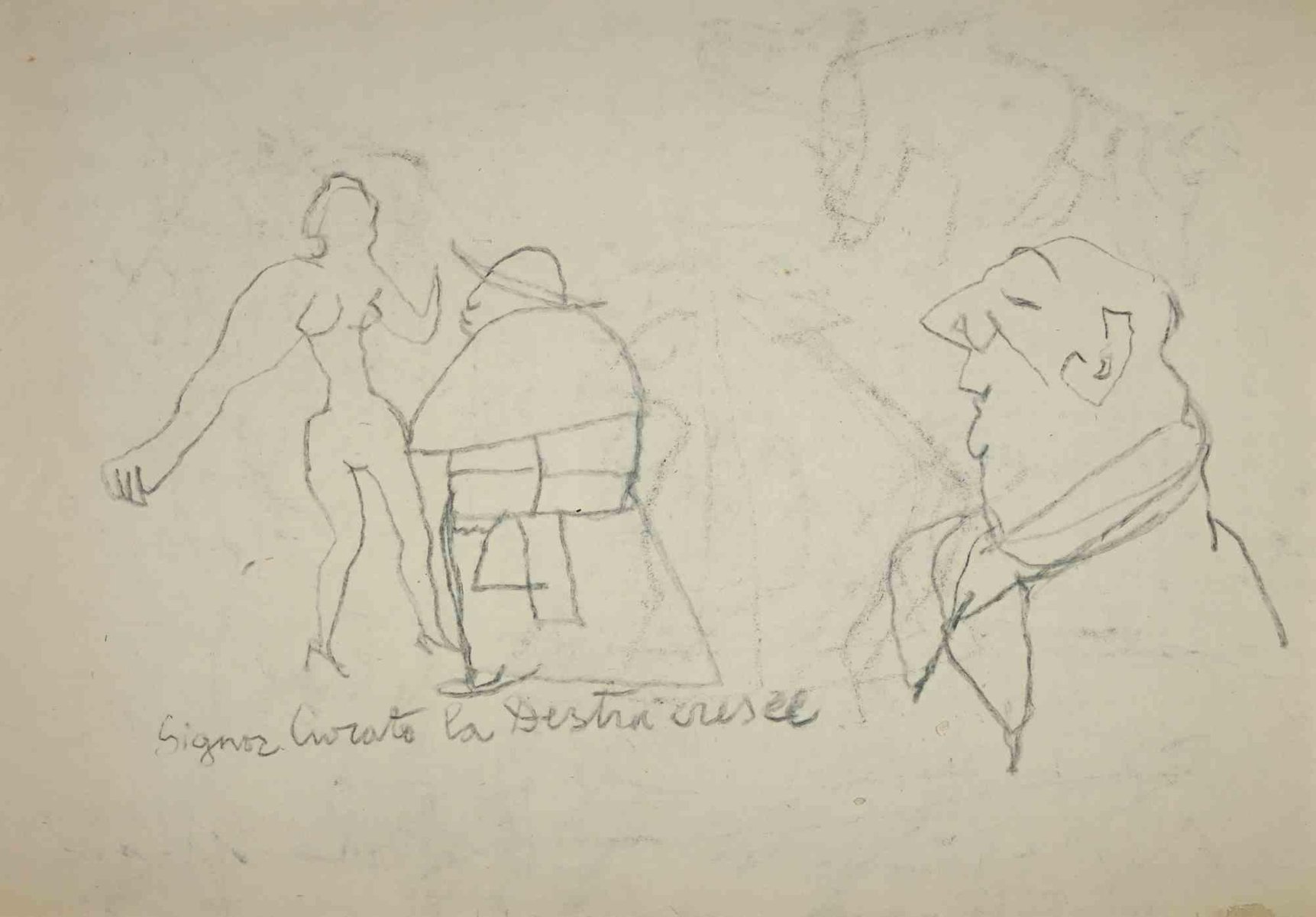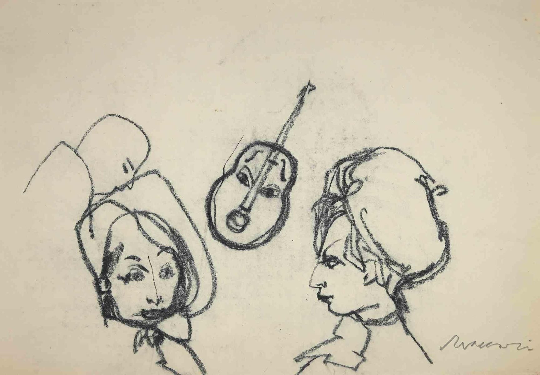 Mino Maccari, The Faces, Original Drawing, Mid-20th-Century