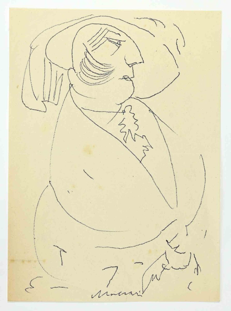 The Lady is a China Ink Drawing realized by Mino Maccari (1924-1989) in the 1960s. Hand-signed on the lower. Good conditions. Mino Maccari (Siena, 1924-Rome, June 16, 1989) was an Italian writer, painter, engraver and journalist, winner of the Feltrinelli Prize for Painting in 1963 and first winner of the Forte dei Marmi Satira Prize in 1973.After completing his secondary education, he enrolls in university. An interventionist like many young people of his time, he took part in the Great War at the age of nineteen as a field artillery officer. At the end of the conflict he resumed his university studies in Siena and in 1920 he graduated in law. In 1924 he was called by Angiolo Bencini to take care of the printing of the magazine Il Selvaggio, openly uncompromising fascist, revolutionary and anti-bourgeois, where his first engravings were published. After a few years of coexistence between work at the newspaper and the law firm, at the beginning of 1926 he left the legal profession to take over the direction of Il Selvaggio which he would hold until 1942. In 1928 he was the author of the small book published by Vallecchi (Florence), Il Trastullo di Strapaese (little songs and engraved woodwinds) which collected fascist songs (the same book was seized several times from Antonio Gramsci during his detention). with the transfer of the editorial staff of the Selvaggio in 1925 from Colle di Val d'Elsa to Florence, Maccari collaborated with Ardengo Soffici, Ottone Rosai and Achille Lega. In the meantime, between 1927 and 1930, he made himself known to the general public as a painter by participating in various national exhibitions. Also in 1930 Maccari works in Turin at La Stampa as editor-in-chief and has the writer Curzio Malaparte as director. His presence in the cultural and editorial world of the fascist regime is very intense, he writes and collaborates with various magazines: Quadrivio, L'Italia Letteraria, L'Italiano and Omnibus by Leo Longanesi; then, during the war, in il Primato di Bottai and, subsequently again, in Il Mondo di Pannunzio (from the first number, in 1949), up to Documento by Federigo Valli. His graphic production is also vast, ranging from the Album of Vallecchi (1925), Il trastullo di Strapaese (1928) to Linoleum (1931). Maccari illustrated in 1934 La vecchia del Bal Bullier by Antonio Baldini and in 1942 he published the Album folder, followed by Come quando fuori Piove and Il superfluo illustrata.For his pictorial work full of evident chromatic accentuations and fast brushstrokes, the violent drawing combined with the lively stroke of the graphic sign of his engravings, he is recognized by critics as a complete artist. In 1962 he was also entrusted with the presidency of the Accademia di San Luca in Rome and managed to obtain a personal exhibition at Gallery 63 in New York. His production of drawings, watercolors, temperas, etc. is endless, sometimes in collaboration with prestigious publishing houses; it is worth mentioning, just as an excellent example, the 32 b/w and color drawings with which he illustrated Il gusto di vivere, a volume that collects writings by Giancarlo Fusco, edited by Natalia Aspesi and published by Laterza in 1985. Maccari, Sienese and great contradaiolo della Torre, painted the Palio of 16 August 1970 won by Selva. In 1973 he was awarded the Political Satire Award of Forte dei Marmi, an award born in that year. He died without great fanfare, in silence, at the age of ninety, in Rome on June 16, 1989.