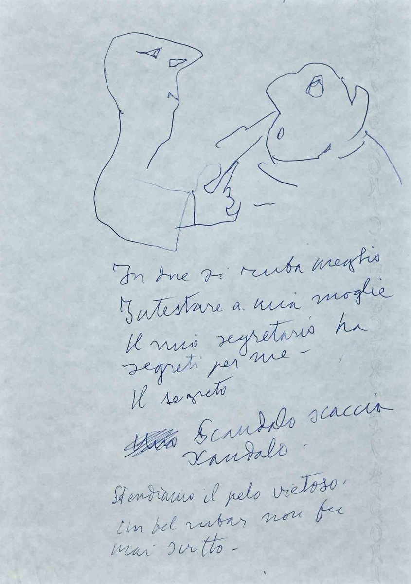 Mino Maccari, The Menace, Original Drawing, Mid-20th-Century