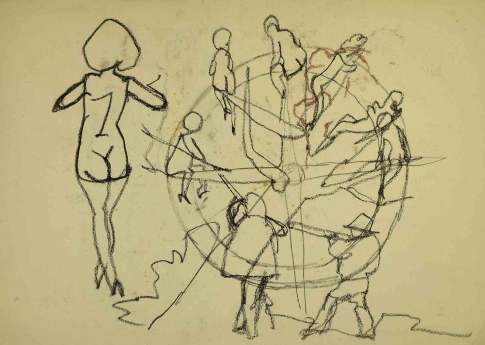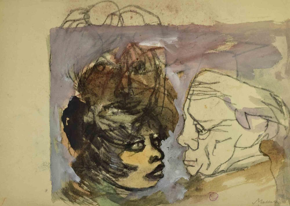 Figure is an artwork realized by Mino Maccari (1924-1989) in the Mid-20th Century. Charcoal and watercolor on paper. Signed by the artist. Good conditions. Mino Maccari (Siena, 1924-Rome, June 16, 1989) was an Italian writer, painter, engraver and journalist, winner of the Feltrinelli Prize for Painting in 1963 and first winner of the Forte dei Marmi Satira Prize in 1973.After completing his secondary education, he enrolls in university. An interventionist like many young people of his time, he took part in the Great War at the age of nineteen as a field artillery officer. At the end of the conflict he resumed his university studies in Siena and in 1920 he graduated in law. In 1924 he was called by Angiolo Bencini to take care of the printing of the magazine Il Selvaggio, openly uncompromising fascist, revolutionary and anti-bourgeois, where his first engravings were published. After a few years of coexistence between work at the newspaper and the law firm, at the beginning of 1926 he left the legal profession to take over the direction of Il Selvaggio which he would hold until 1942. In 1928 he was the author of the small book published by Vallecchi (Florence), Il Trastullo di Strapaese (little songs and engraved woodwinds) which collected fascist songs (the same book was seized several times from Antonio Gramsci during his detention). with the transfer of the editorial staff of the Selvaggio in 1925 from Colle di Val d'Elsa to Florence, Maccari collaborated with Ardengo Soffici, Ottone Rosai and Achille Lega. In the meantime, between 1927 and 1930, he made himself known to the general public as a painter by participating in various national exhibitions. Also in 1930 Maccari works in Turin at La Stampa as editor-in-chief and has the writer Curzio Malaparte as director. His presence in the cultural and editorial world of the fascist regime is very intense, he writes and collaborates with various magazines: Quadrivio, L'Italia Letteraria, L'Italiano and Omnibus by Leo Longanesi; then, during the war, in il Primato di Bottai and, subsequently again, in Il Mondo di Pannunzio (from the first number, in 1949), up to Documento by Federigo Valli. His graphic production is also vast, ranging from the Album of Vallecchi (1925), Il trastullo di Strapaese (1928) to Linoleum (1931). Maccari illustrated in 1934 La vecchia del Bal Bullier by Antonio Baldini and in 1942 he published the Album folder, followed by Come quando fuori Piove and Il superfluo illustrata.For his pictorial work full of evident chromatic accentuations and fast brushstrokes, the violent drawing combined with the lively stroke of the graphic sign of his engravings, he is recognized by critics as a complete artist. In 1962 he was also entrusted with the presidency of the Accademia di San Luca in Rome and managed to obtain a personal exhibition at Gallery 63 in New York. His production of drawings, watercolors, temperas, etc. is endless, sometimes in collaboration with prestigious publishing houses; it is worth mentioning, just as an excellent example, the 32 b/w and color drawings with which he illustrated Il gusto di vivere, a volume that collects writings by Giancarlo Fusco, edited by Natalia Aspesi and published by Laterza in 1985. Maccari, Sienese and great contradaiolo della Torre, painted the Palio of 16 August 1970 won by Selva. In 1973 he was awarded the Political Satire Award of Forte dei Marmi, an award born in that year. He died without great fanfare, in silence, at the age of ninety, in Rome on June 16, 1989.