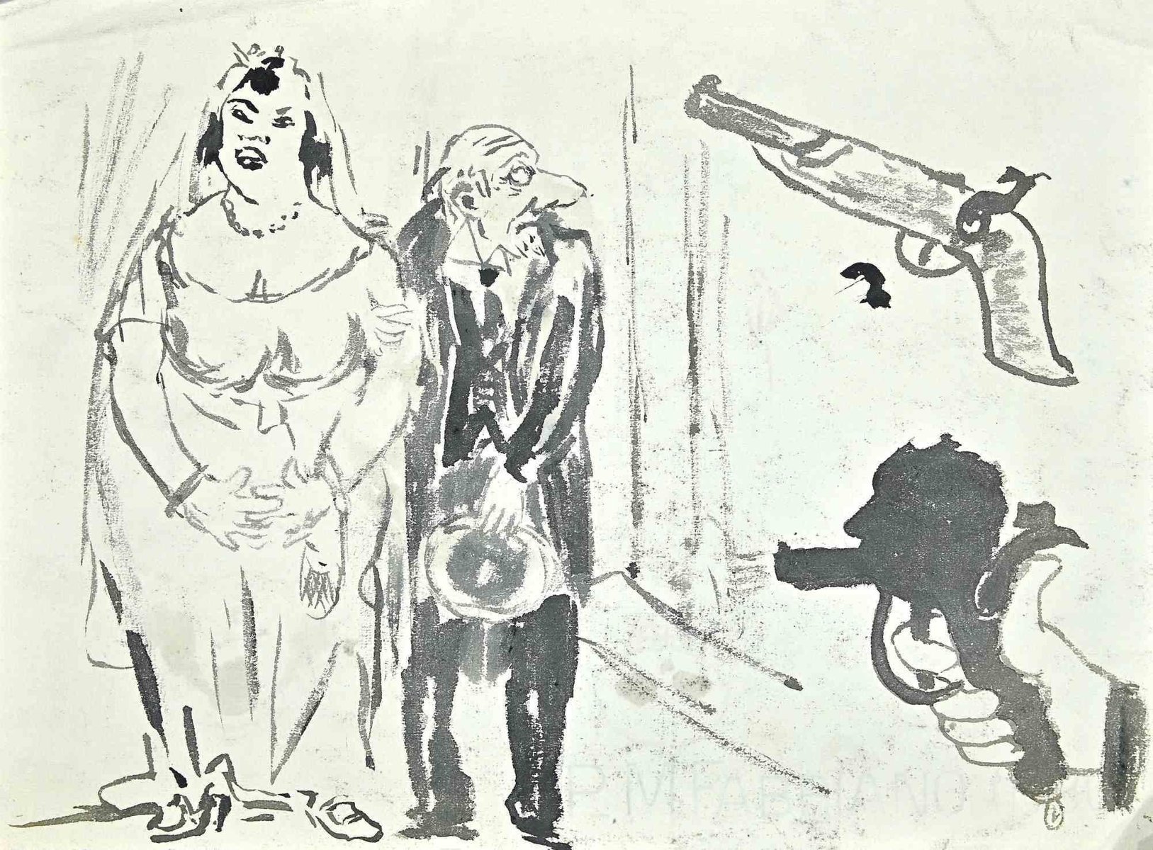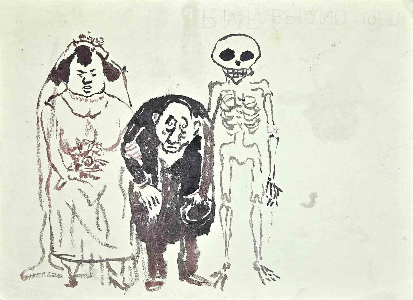 Mino Maccari, The Waiting Death, Original Drawing, Mid-20th-Century
