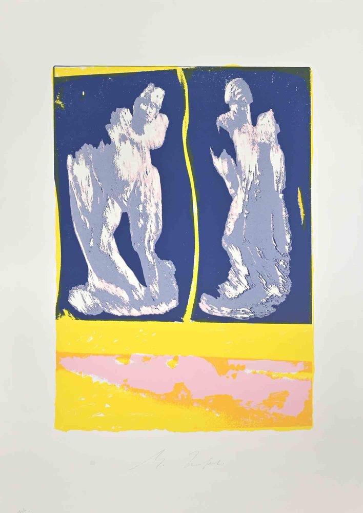 Figures is a Lithograph realized by Mino Trafeli in 1980s. Edition 16/50. Hand signed. Good conditions. Mino Trafeli (Volterra, December 29, 1922 - Volterra, August 9, 2018) was an Italian sculptor and partisan. Fundamental to his education is the art institute in Florence, Magisterium section, not only because here he meets notable teachers (Paronchi, one of the most interesting personalities of the Italian literary panorama, is his professor of Italian literature), but because he enters in contact with a lively and "moving" city. In 1944, Trafeli, thanks to a friend who had put him in contact with the clandestine movement, actively participates in the resistance in the Galluzzo area, Florence. After the war, he maintained his membership in the Pd'A, to then merge, with the left of his party, for a short time, in the PSI within which he maintained his autonomy of libertarian imprint, contributing (as a political militant of basis, as he likes to say) as a provincial municipal councilor, to fundamental projects for the life of Volterra. During his socialist political activity (1956-1957) he agreed to be an illustrator with satirical cartoons for the ancient Florentine socialist newspaper "La Difesa" then led by Lelio Lagorio, future minister of the Republic. The choice to live in his hometown did not prevent him from contacting the most significant centers of contemporary art and culture, especially Milan where he is linked to the Fumagalli Galleria delle Ore. Precious is his intellectual presence in the sixties not only for research and for creative projects, but also for his political vision which leads him to understand the phenomenon of youth protest of which he becomes a critical interlocutor. As Enrico Crispolti writes, "the provocation of behavior that Trafeli comes to suggest in his recent sculptures (those of the sixties, ed.) is therefore of a critical and problematic order. In this sense he understands a duty of generation, of his generation (that appeared precisely after the war), as a specific response in the current debate". Often the sculptor from Volterra, just like Pietro Gobetti, speaks of political culture. The sensitivity of the creative towards the problems of his time (not only in a relative sense) is always present even when one speaks implicitly of the human condition. Without expressing that concept of the death of art of which Hegel speaks. from 1942 he taught at the art institute of Volterra. He exhibits at the Galleria delle Ore di Fumagalli in Milan, the Galleria Schneider in Rome, the Galleria Antidogma in Turin at the Venice Art Biennale, the Carrara Sculpture Biennale and the Rome Quadrennial of Art.