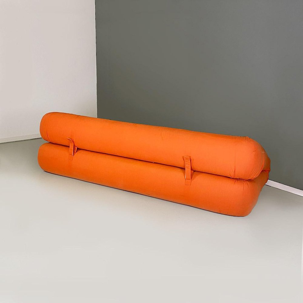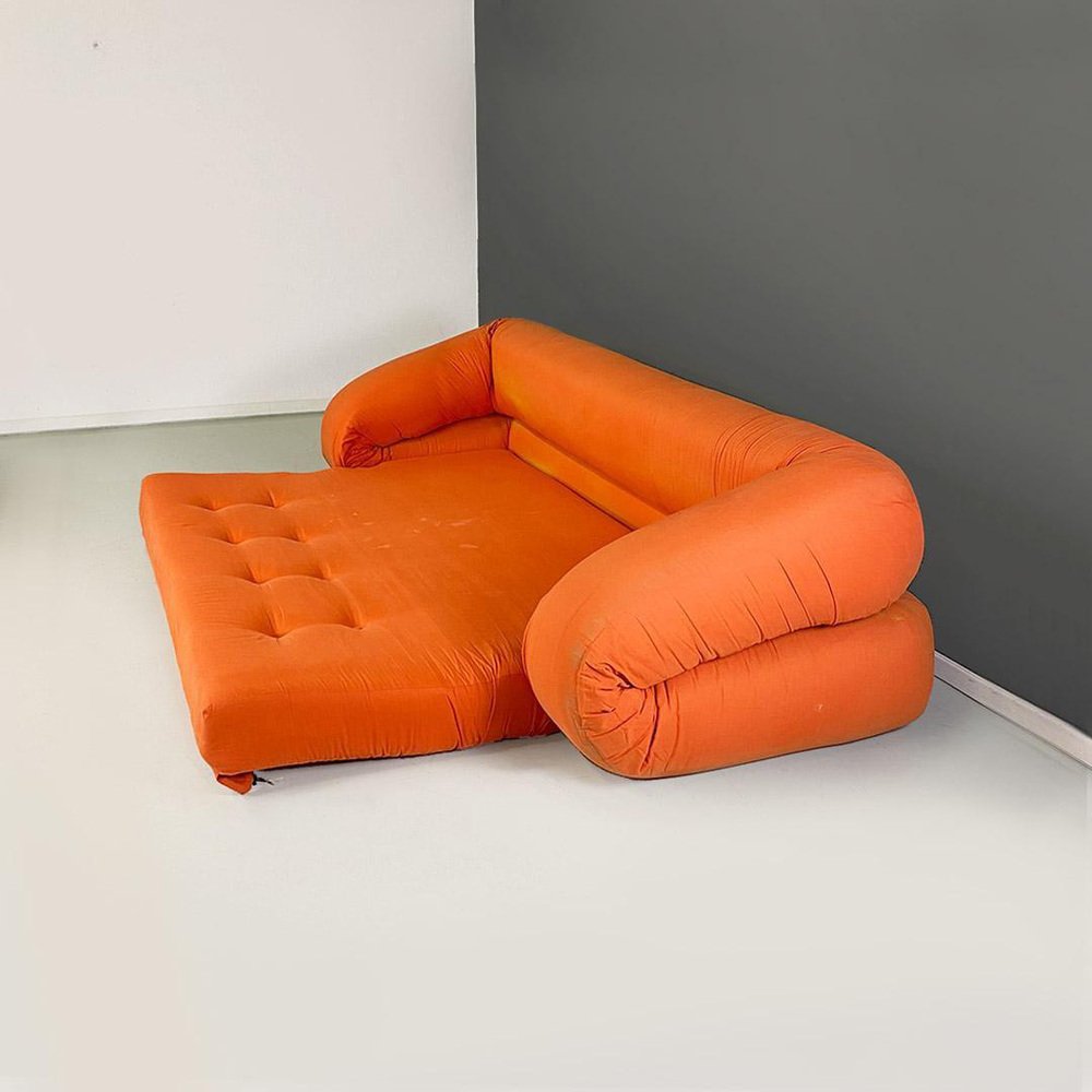 Modern Italian Orange Fabric Openable Sofa Bed, 1980s
